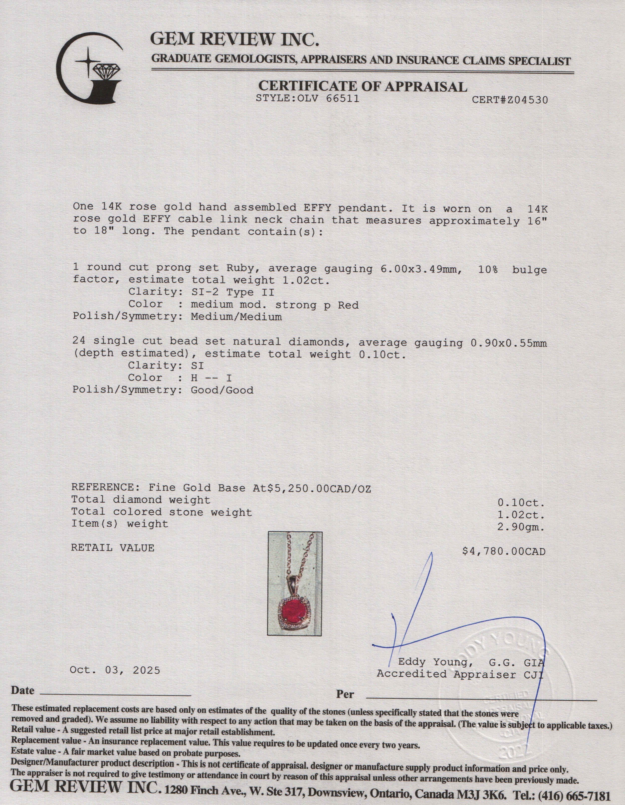 Effy 14k Rose Gold Ruby & Diamond Pendant Necklace