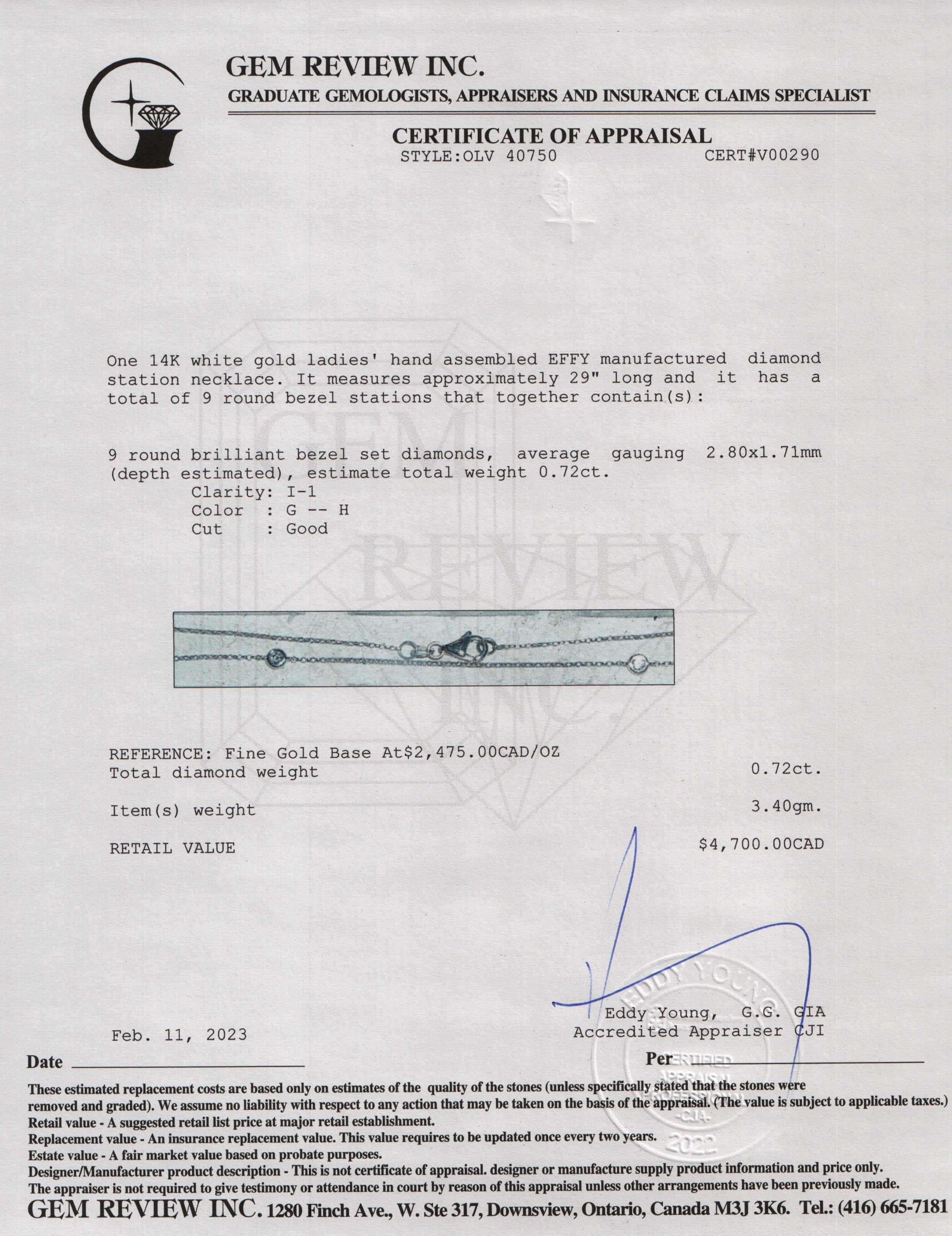 - 9 Round Brilliant Cut Diamonds Totalling Approximately 0.72 ct. of I1 Clarity, G-H Colour, Good Cut