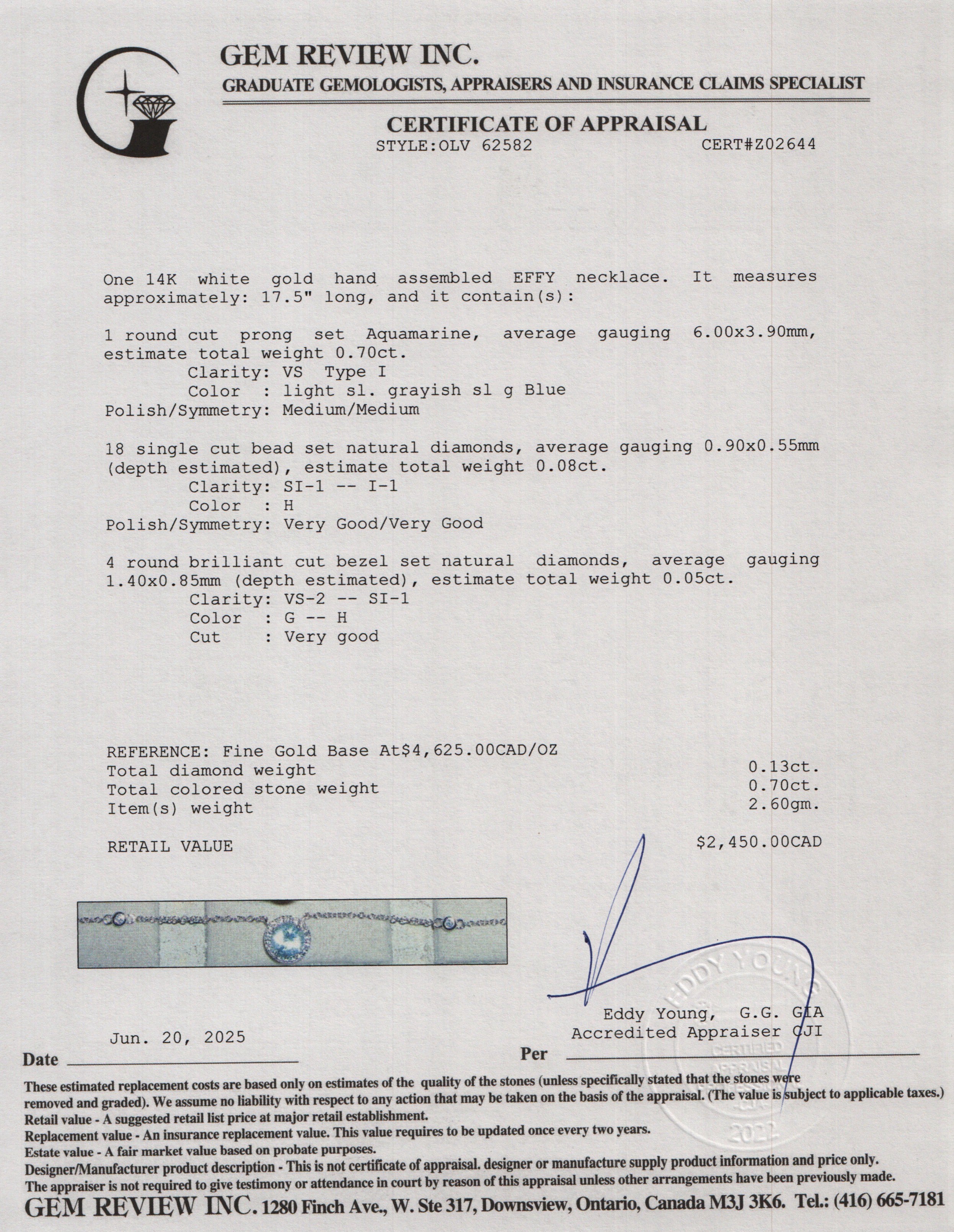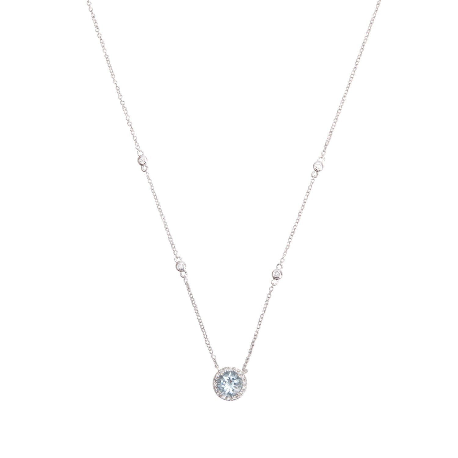 Effy 14k White Gold Aquamarine & Diamond Pendant Necklace