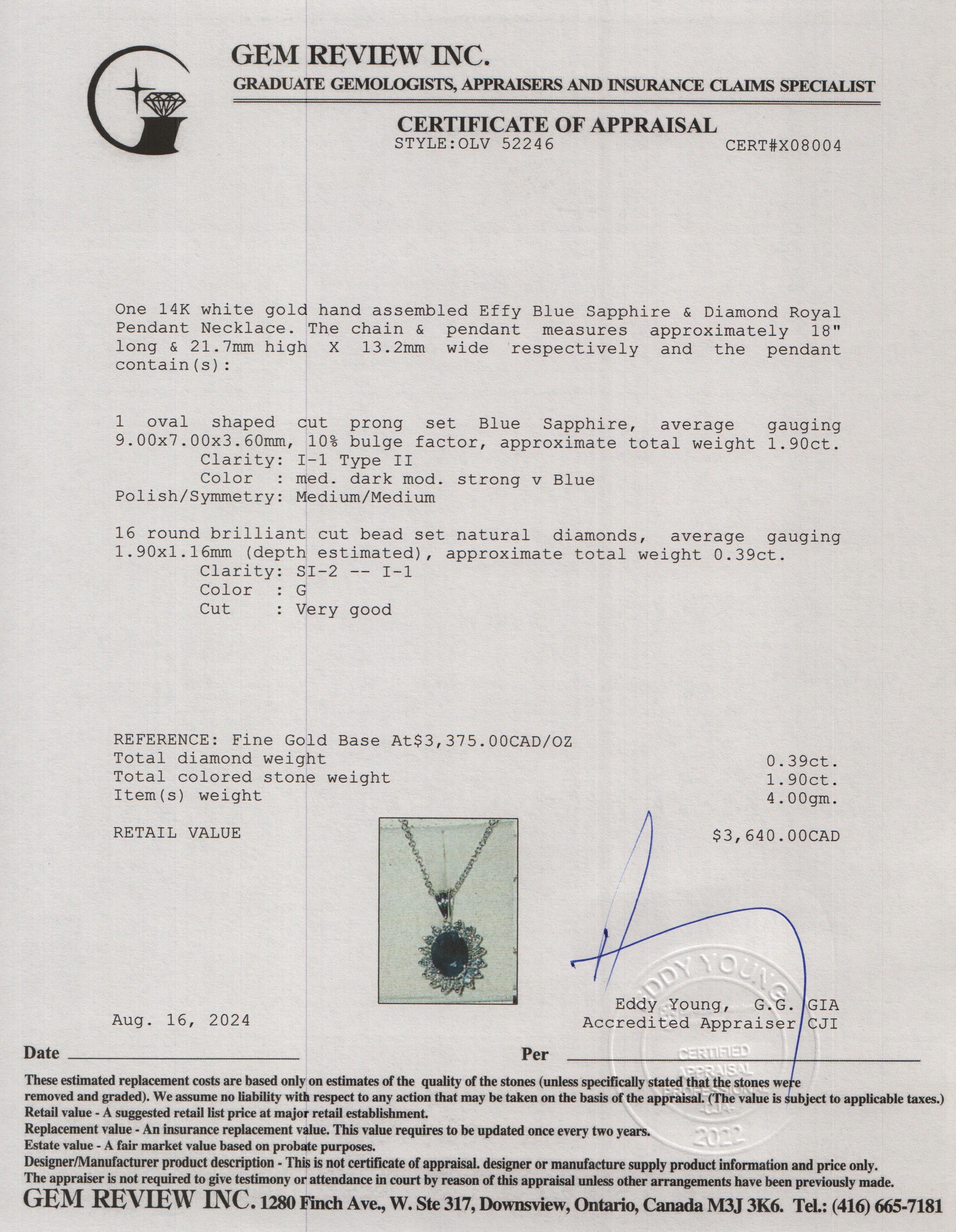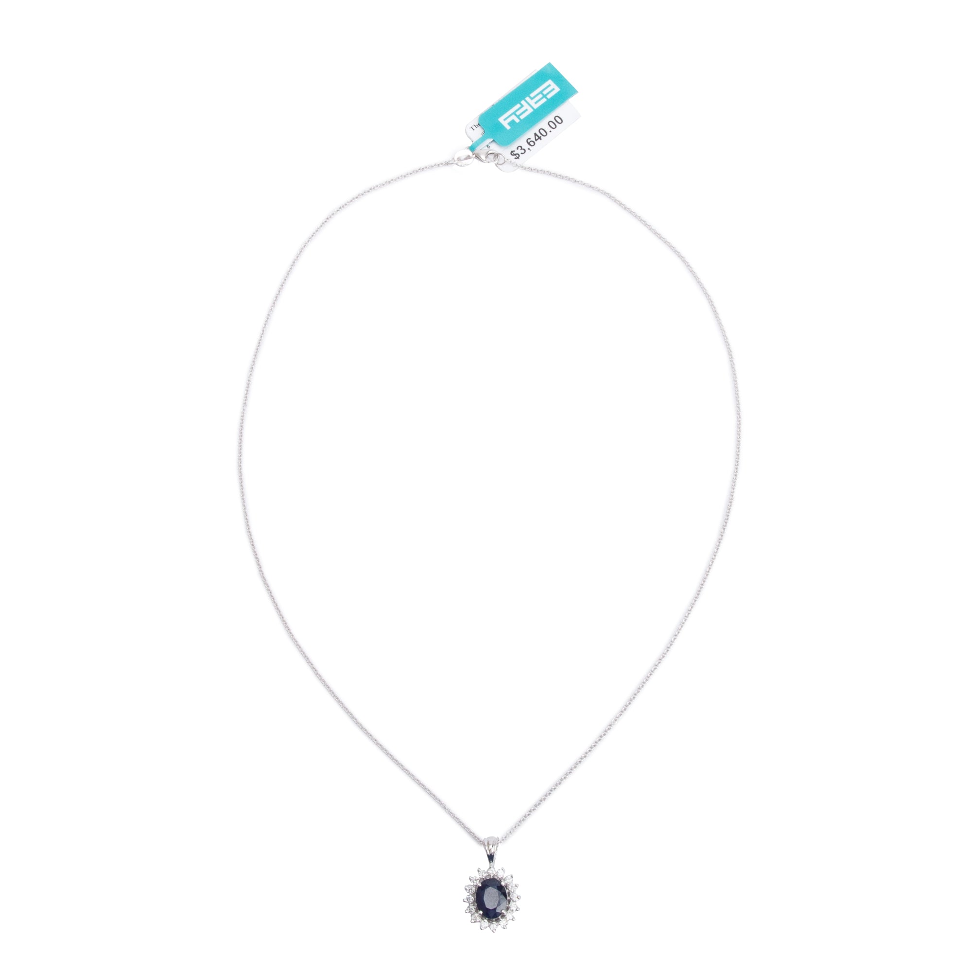 Effy 14k White Gold Blue Sapphire & Diamond Royal Pendant Necklace w/ Box