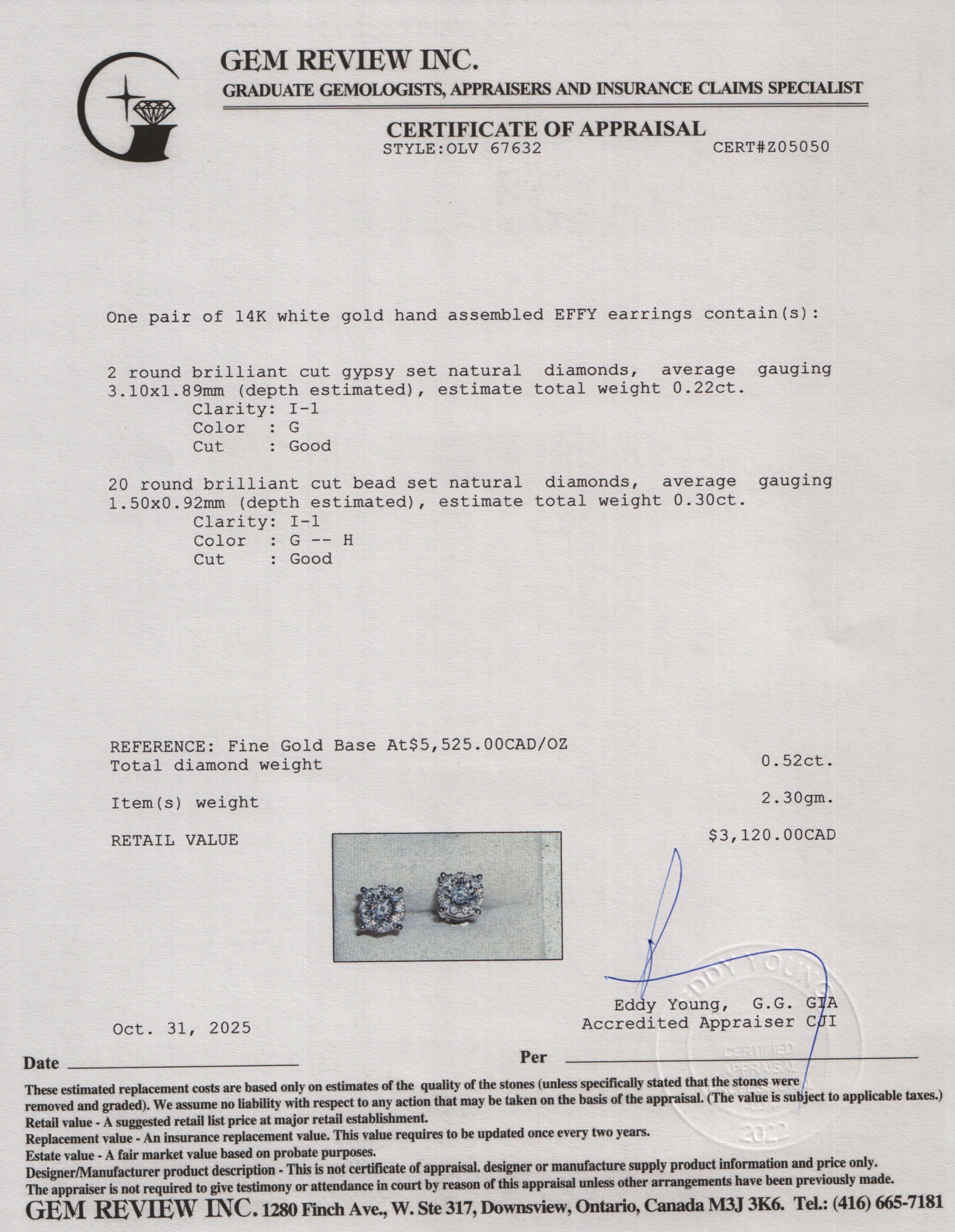 Effy 14k White Gold Diamond Cluster Stud Earrings w/ Box