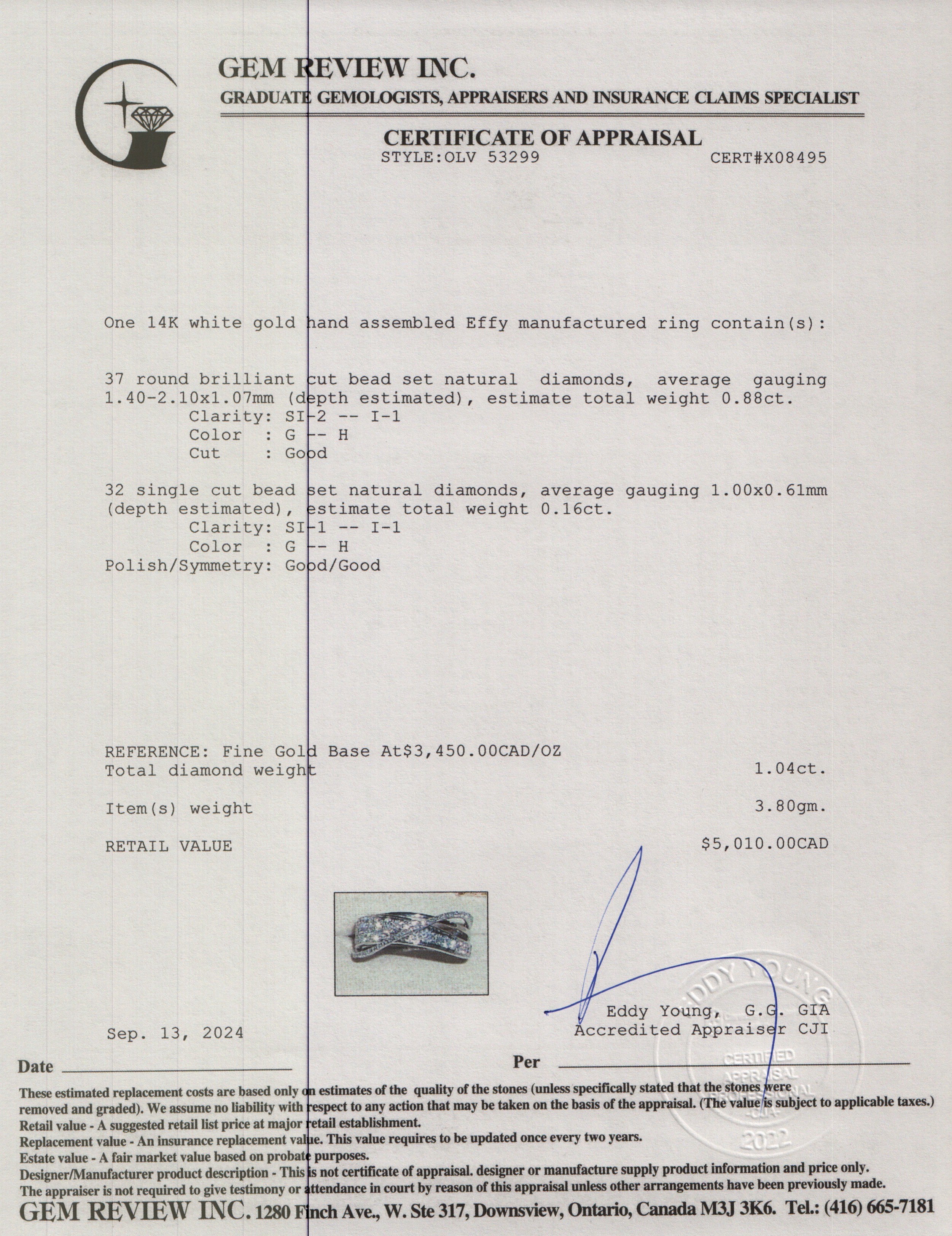 Effy 14k White Gold Diamond Crossover Ring, Size 7