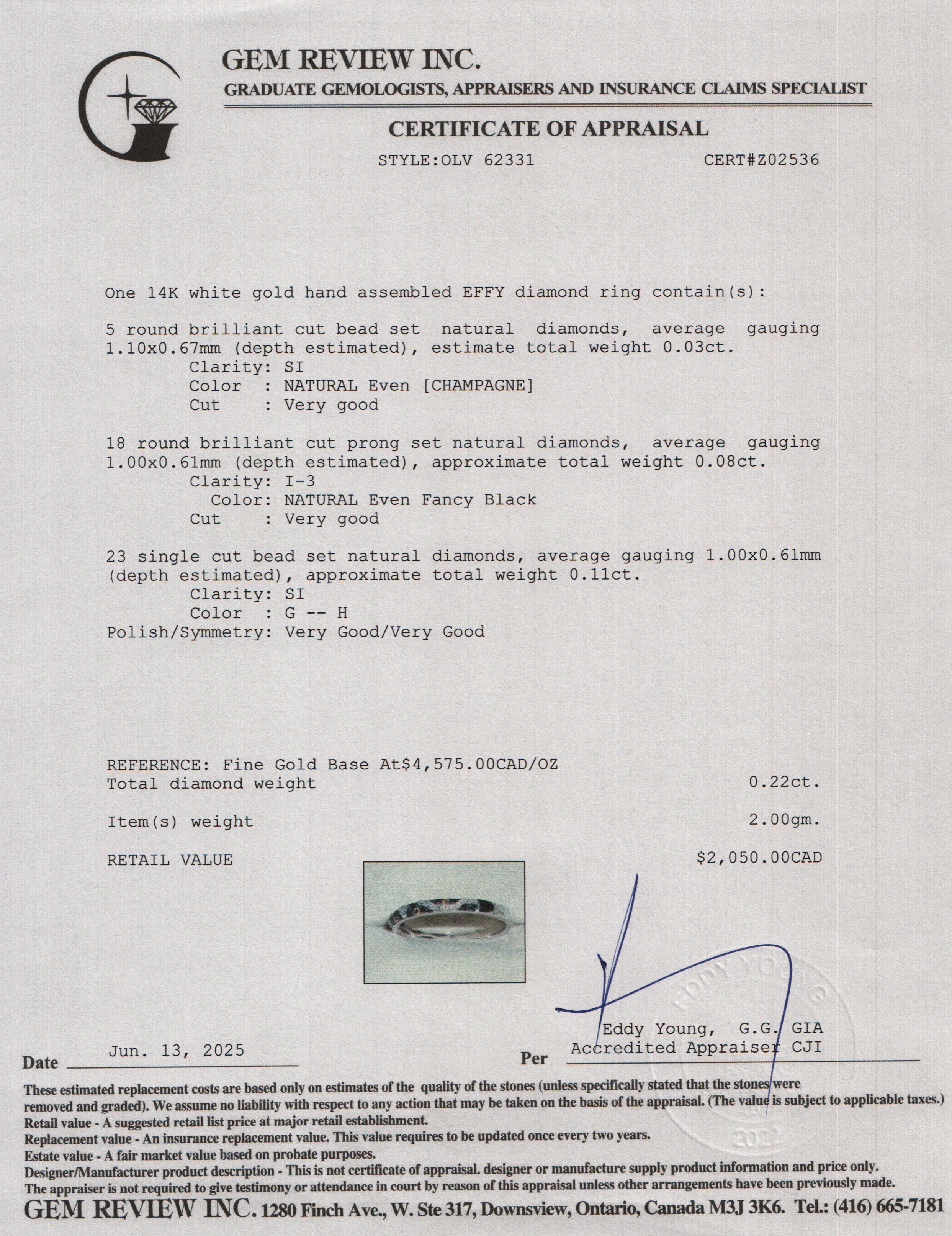 Effy 14k White Gold Multicolor Diamond Band Ring, Size 8