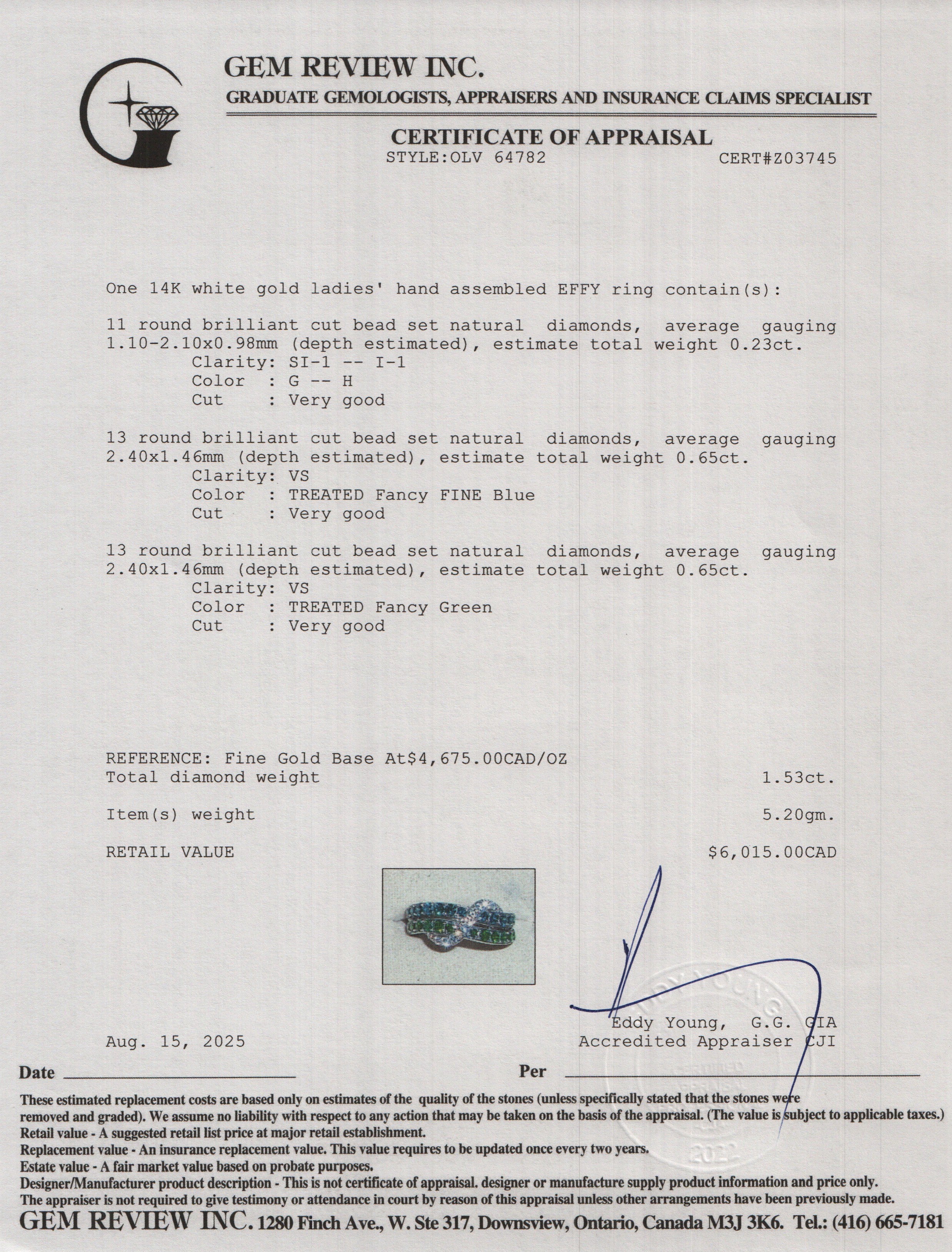 Effy 14k White Gold Multicolor Diamond Ring, Size 7