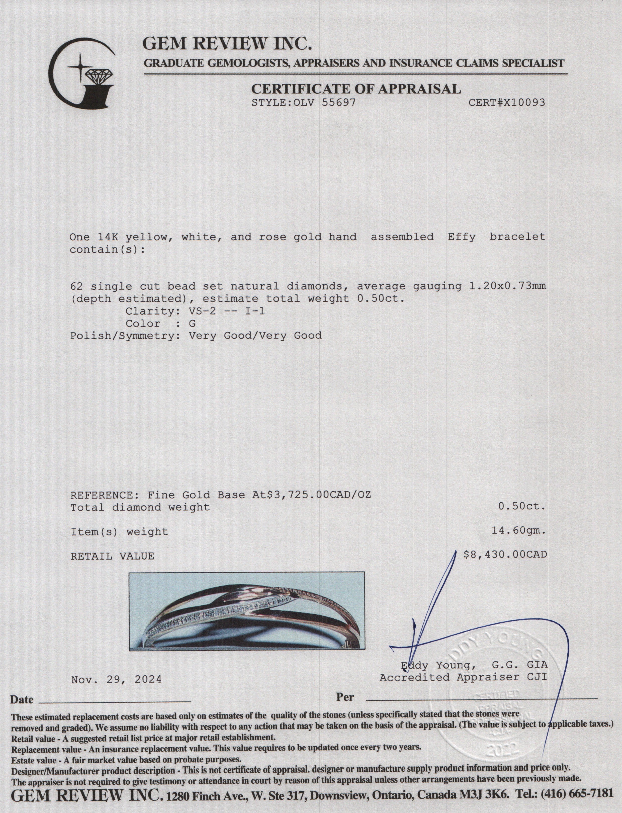 Effy 14k Yellow, White & Rose Gold Diamond Bangle Bracelet