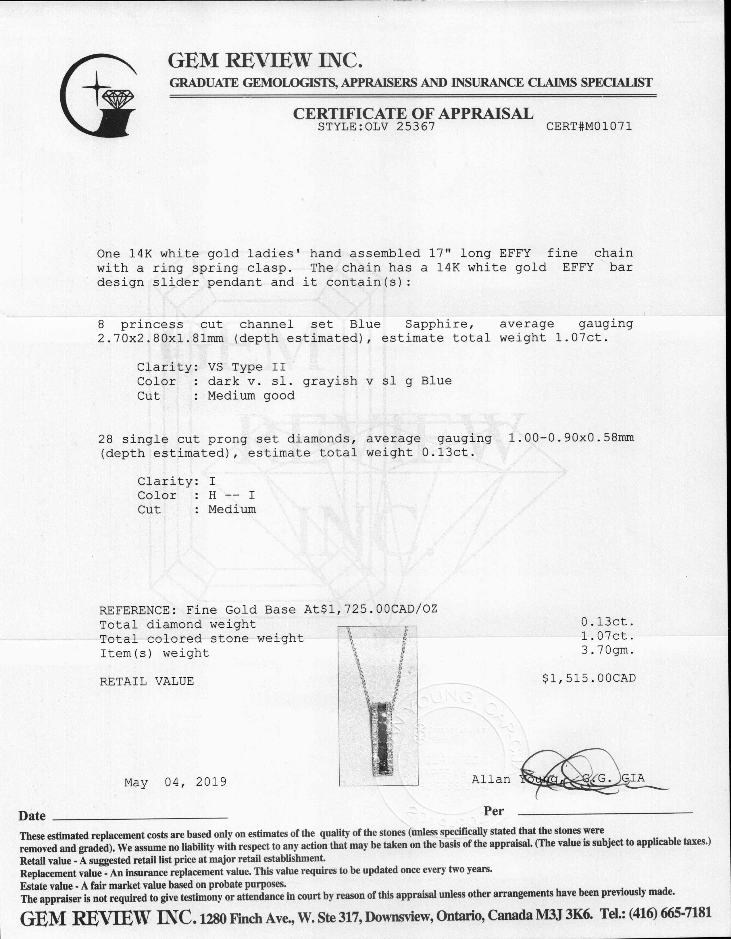 - 8 Princess Cut Blue Sapphires Totalling Approximately 1.07 ct.