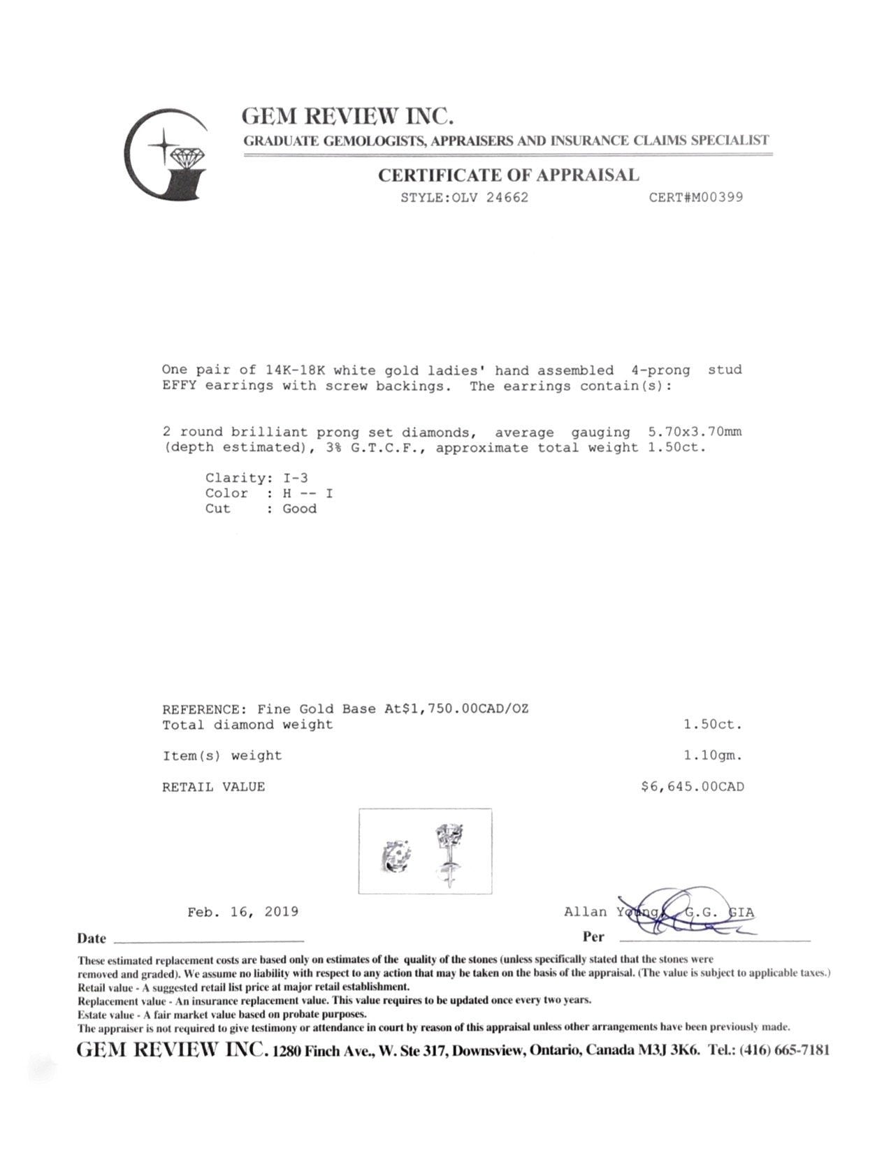 - 2 Round Brilliant Cut Diamonds Totalling 1.50 ct. of I3 Clarity, H-I Colour, Good Cut