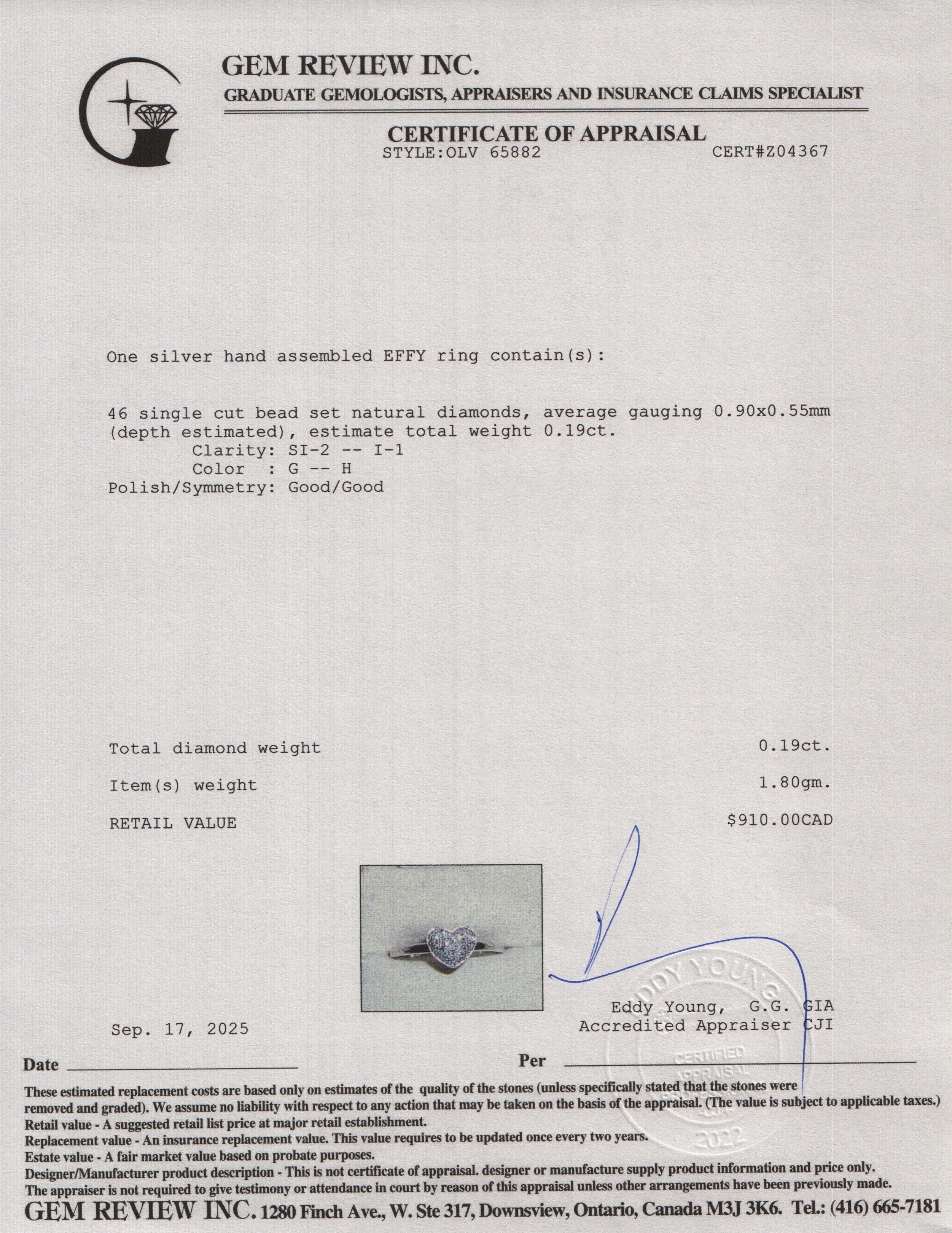 Effy Sterling Silver Diamond Heart Ring, Size 7