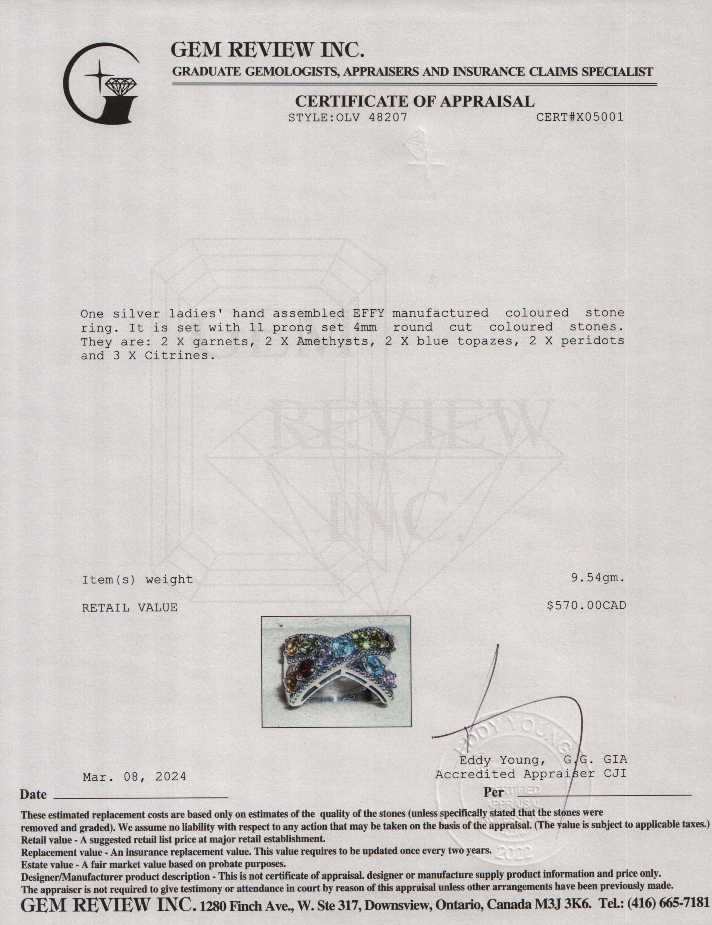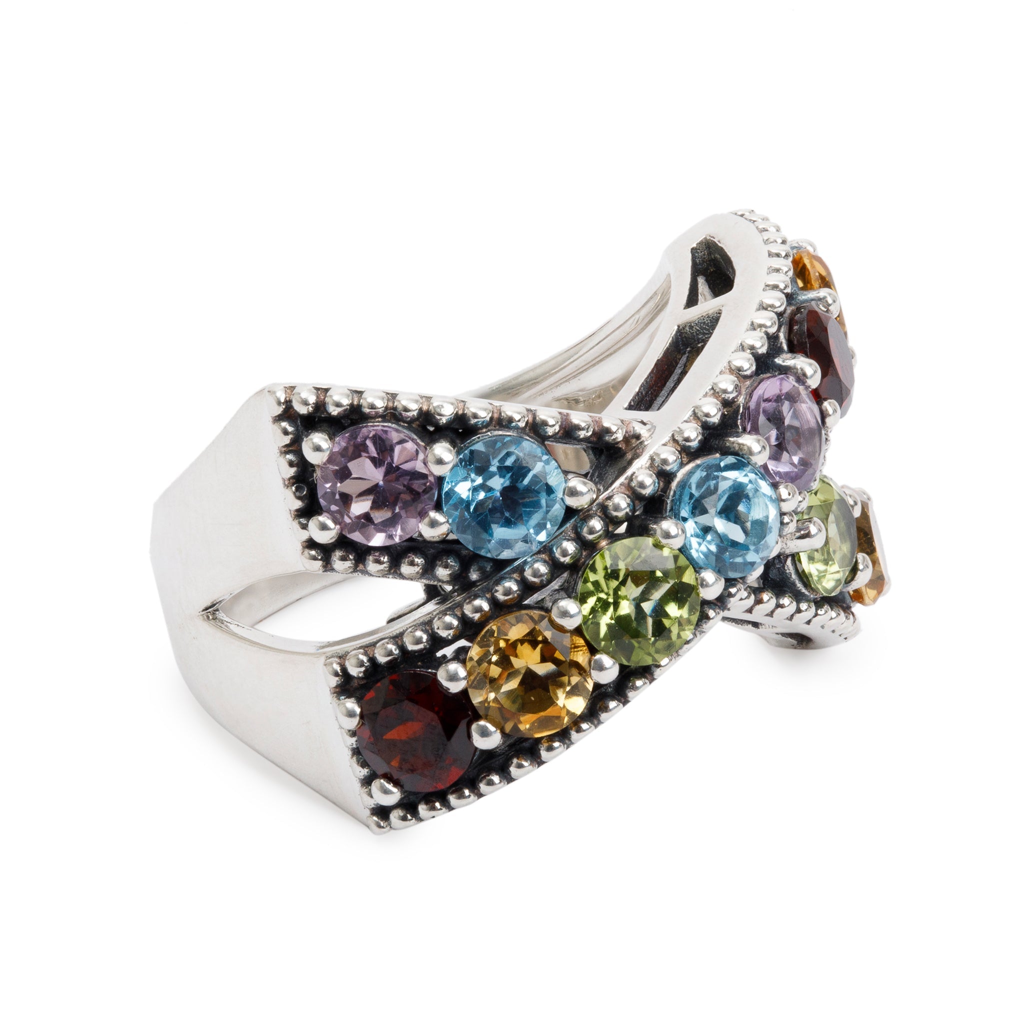 Effy Sterling Silver Multi-Gemstone Cocktail Ring, Size 7