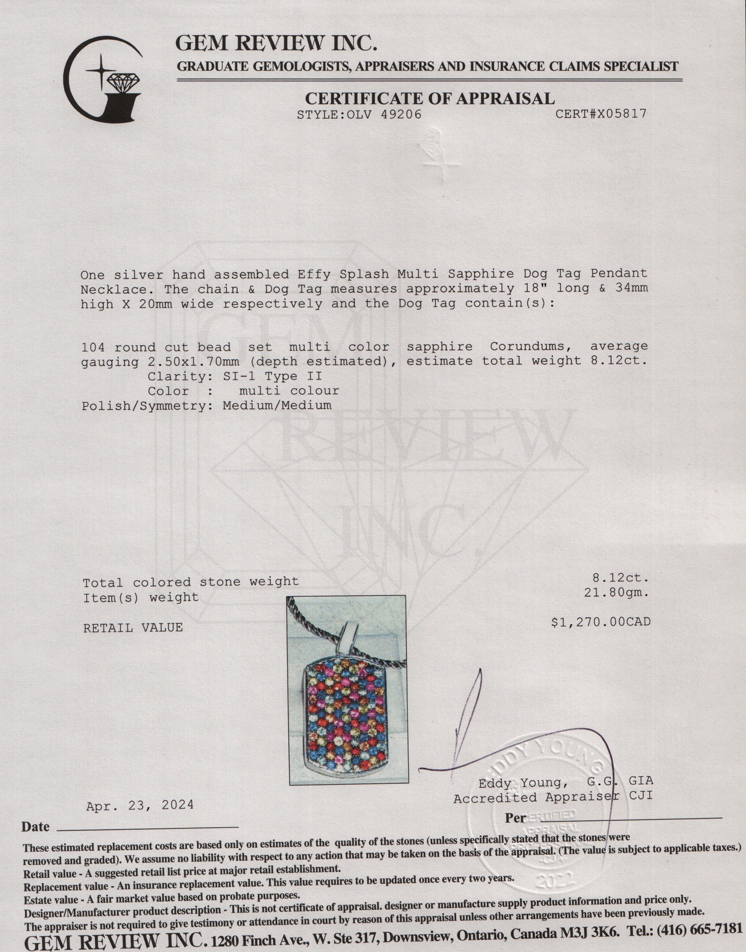 Effy Sterling Silver Splash Multi Sapphire Dog Tag Pendant Necklace