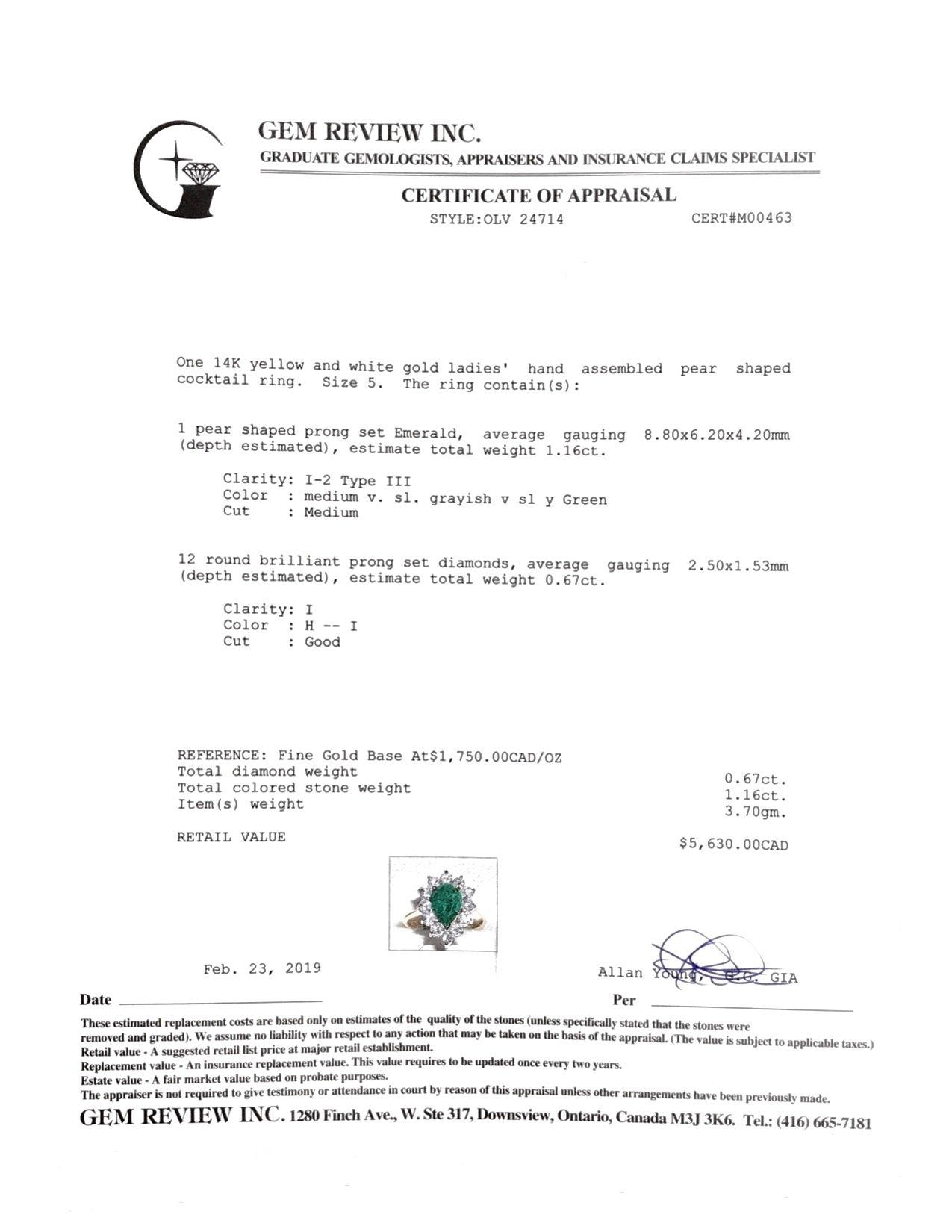• 1 Pear Shaped Emerald Weighing Approximately 1.16 ct.
