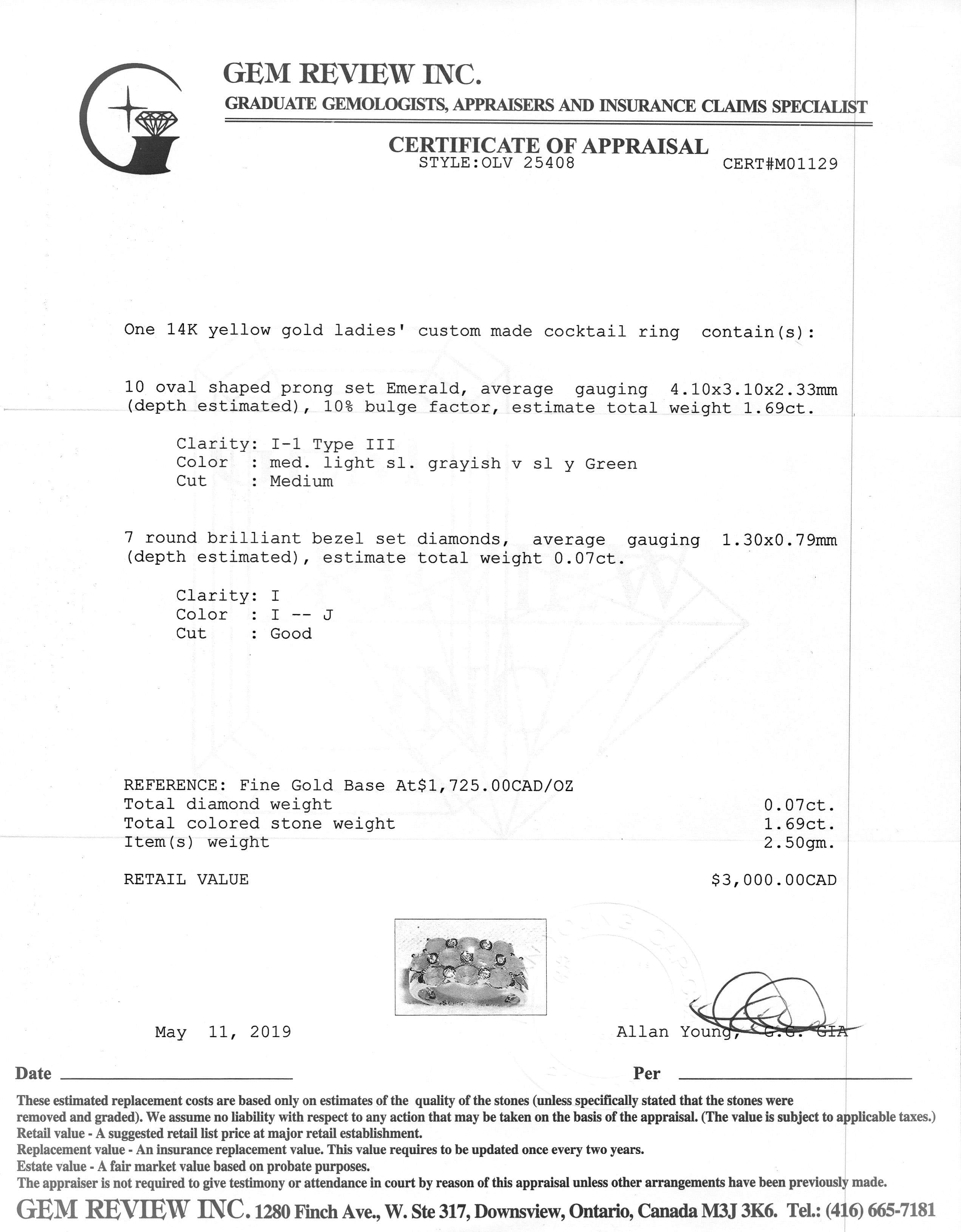 - 10 Oval Shaped Emeralds Totalling Approximately 1.69 ct.