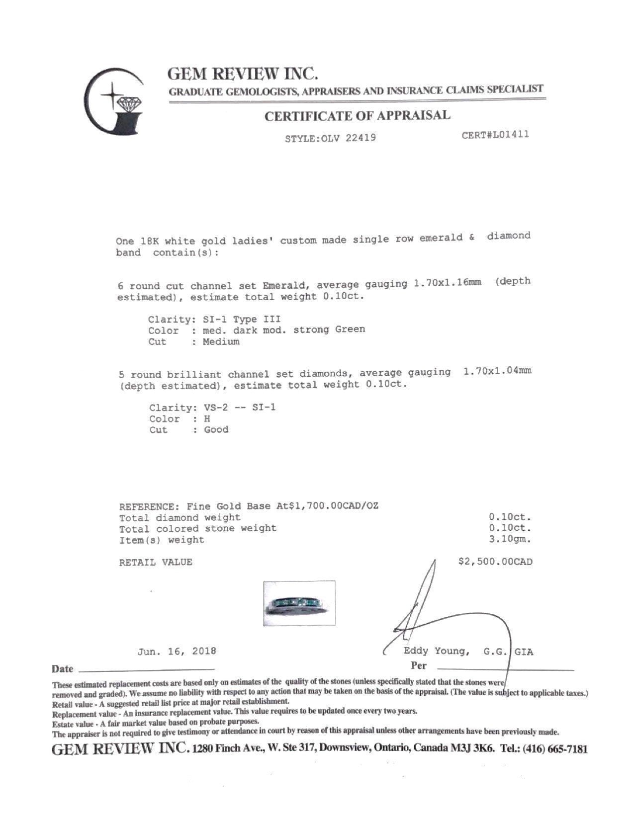 - 6 Round Cut Channel Set Emeralds Totalling Approximately 0.10 ct.
