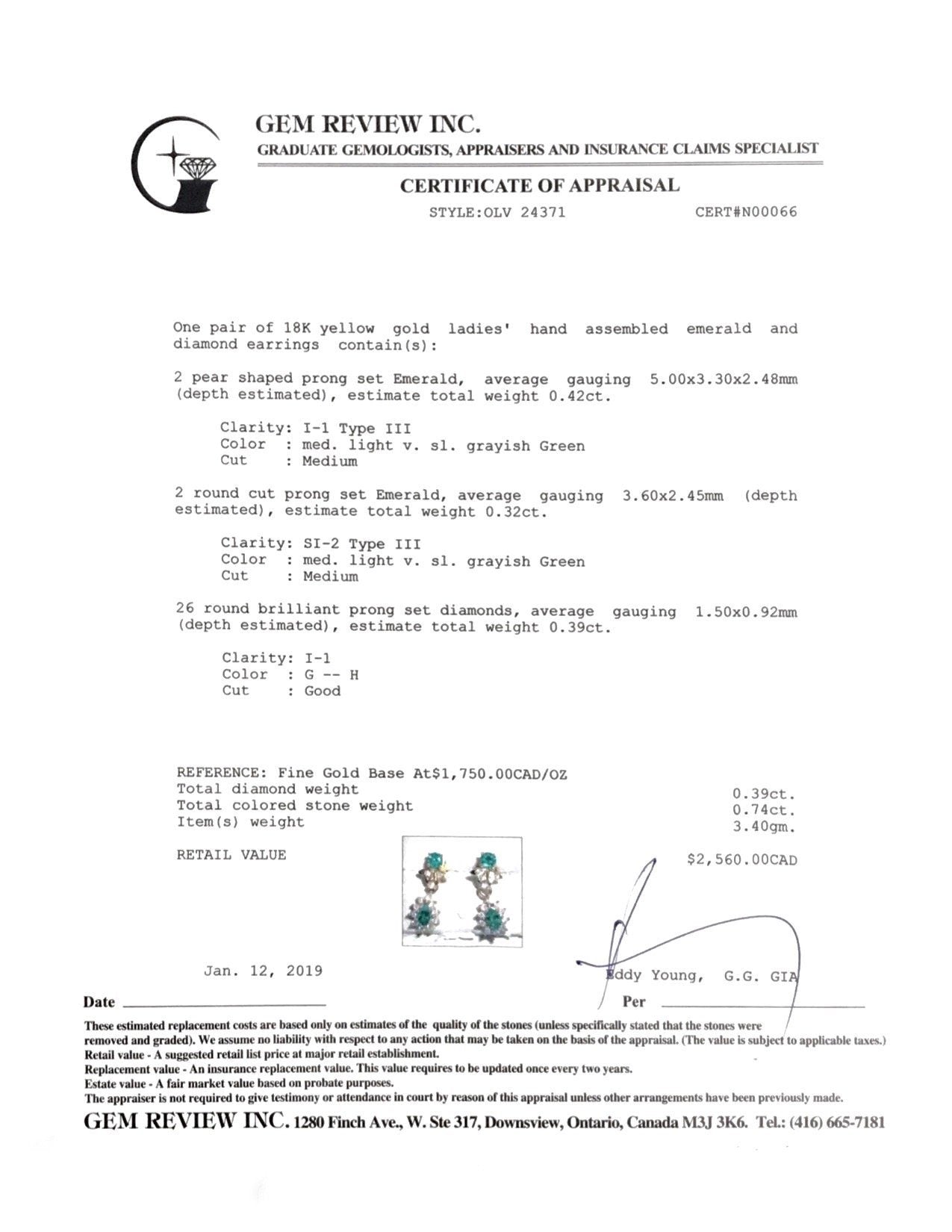 • 2 Pear Shaped Emeralds Totalling Approximately 0.42 ct.