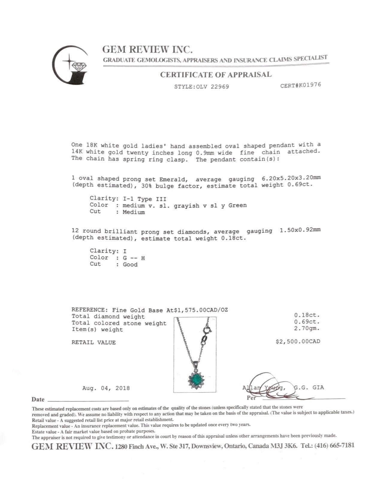 - 1 Oval Shaped Emerald Weighing Approximately 0.69 ct.