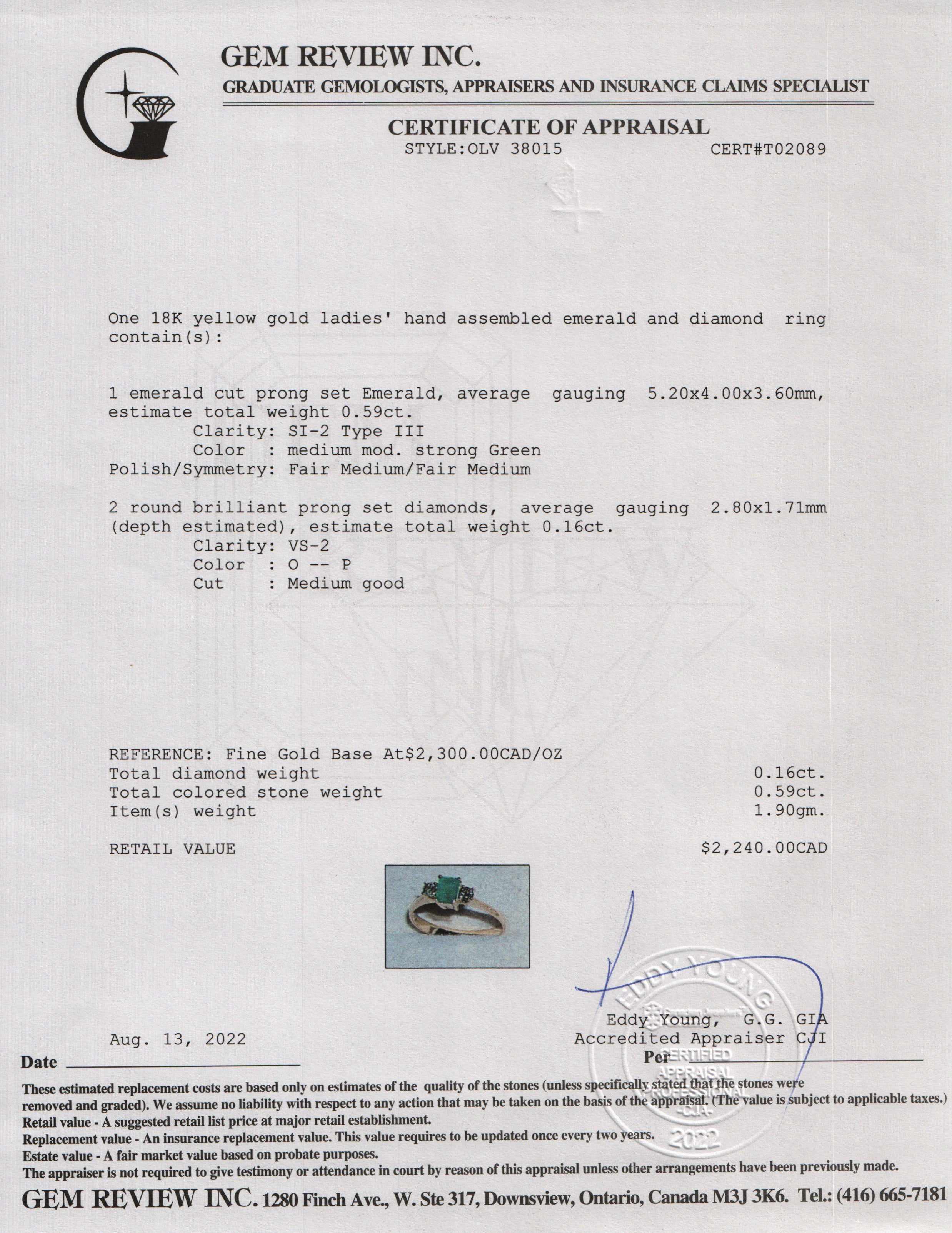 - 1 Emerald Cut Emerald Weighing Approximately 0.59 ct.
