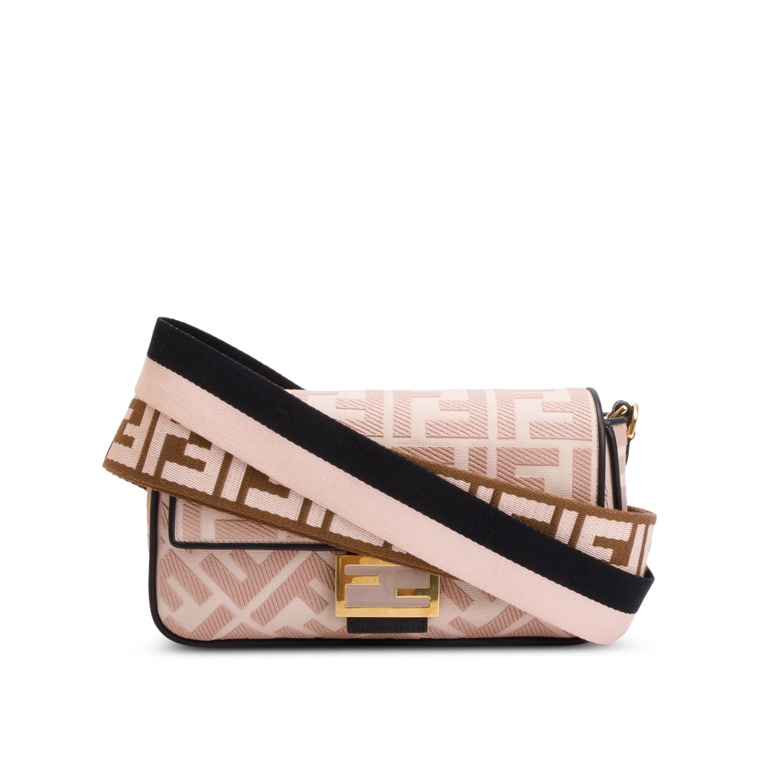 2020 Pink FF Embroidered Canvas Baguette Shoulder Bag w/ Straps & Box