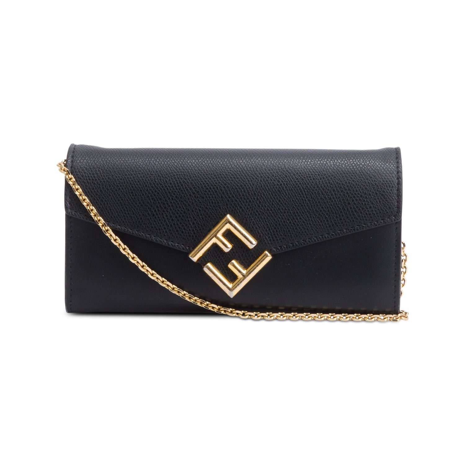 2023 Black Leather FF Diamonds Continental Wallet on Chain