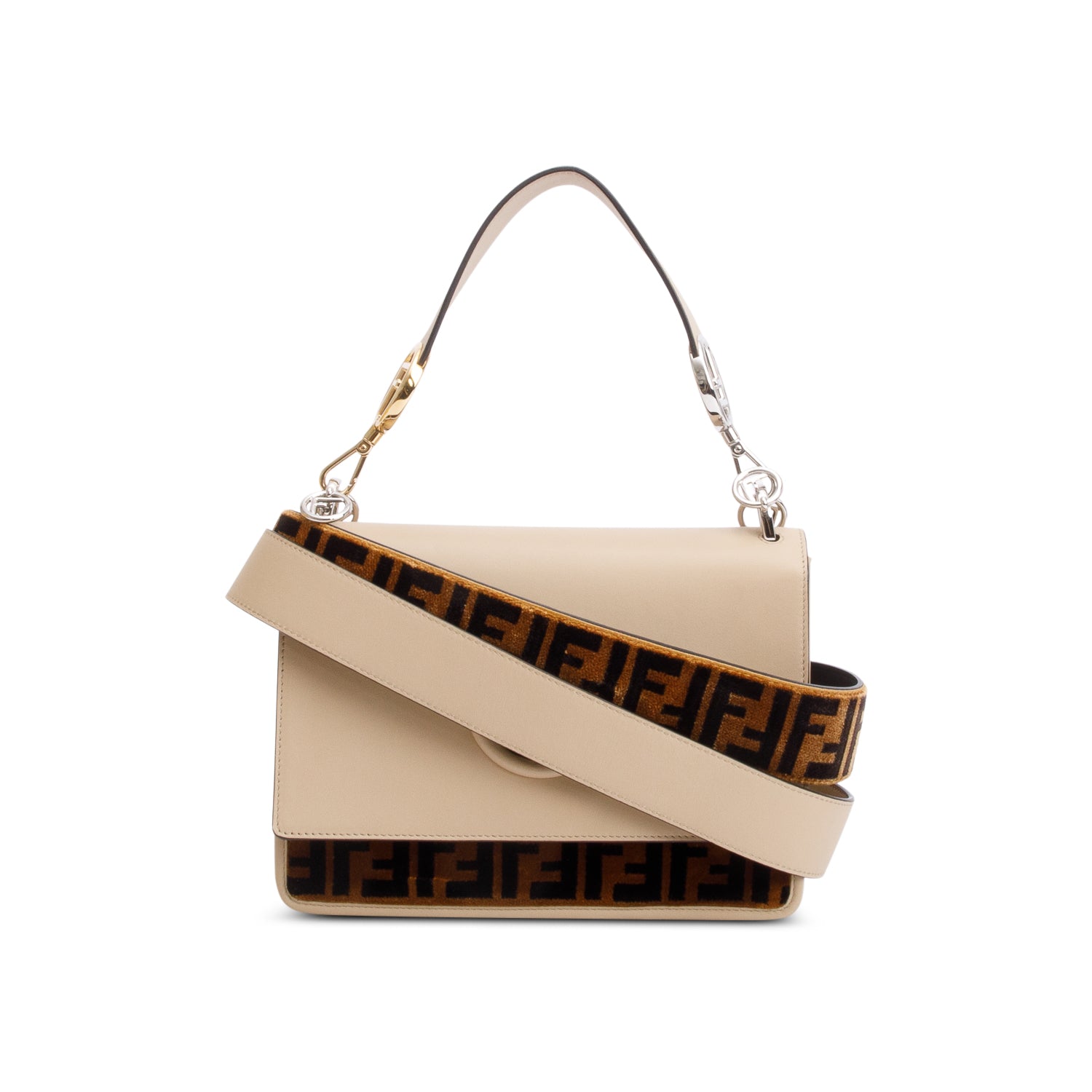 Beige Calfskin Leather FF Zucca Velvet Medium F is Kan I Shoulder Bag w/ Straps & Box