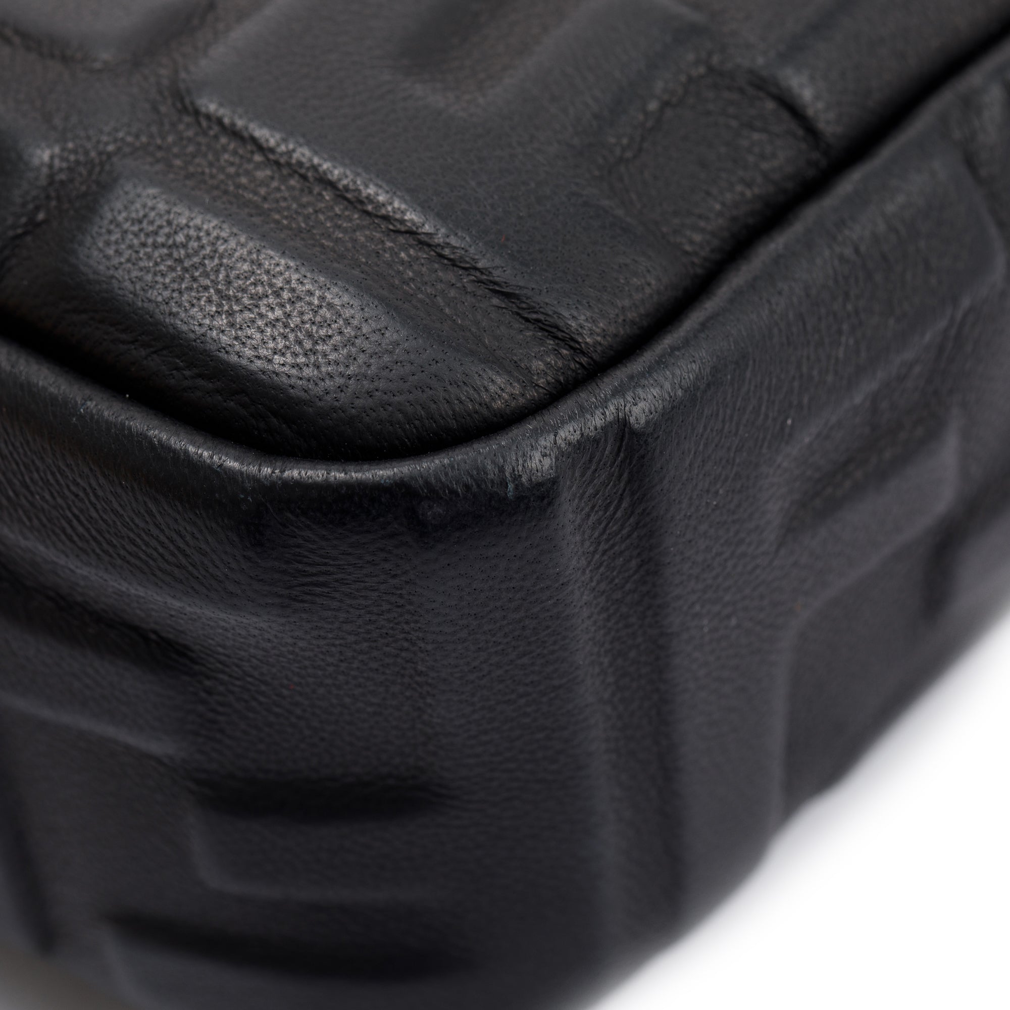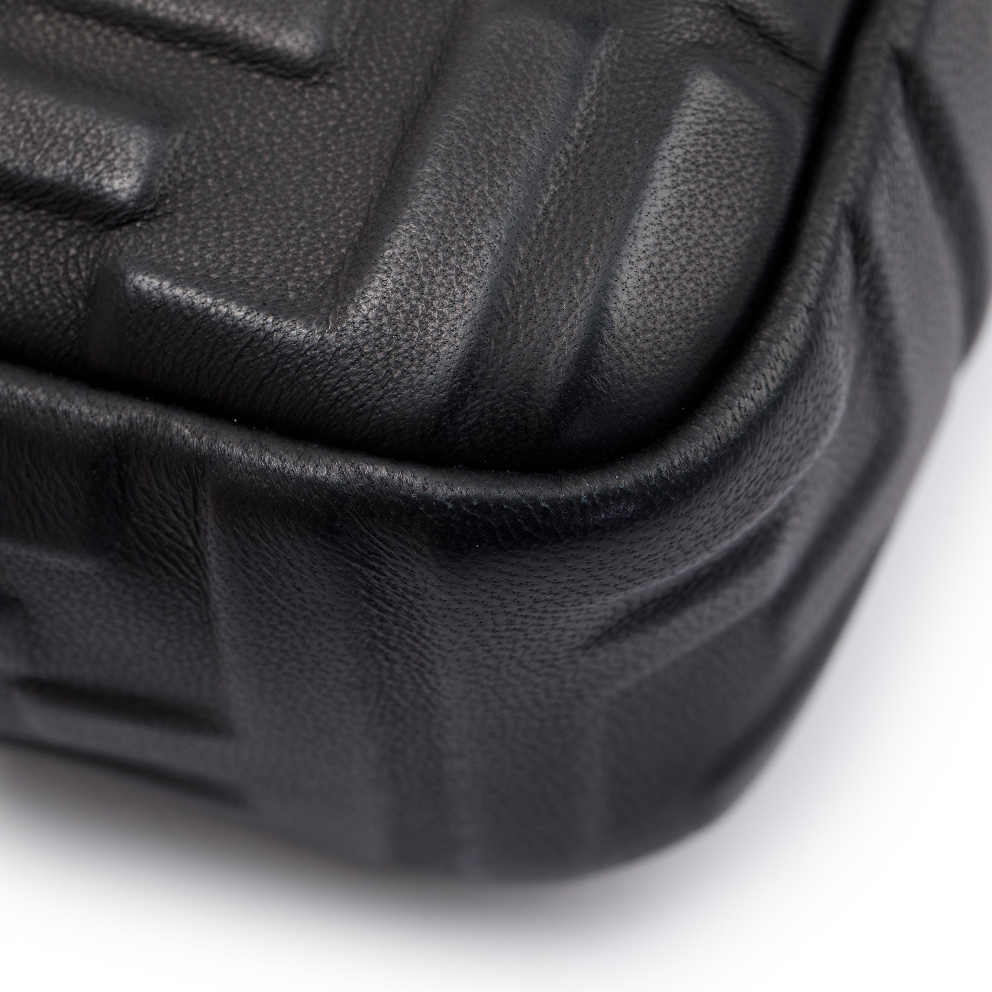 Black Nappa FF Leather Embossed Baguette NM Shoulder Bag w/ Box