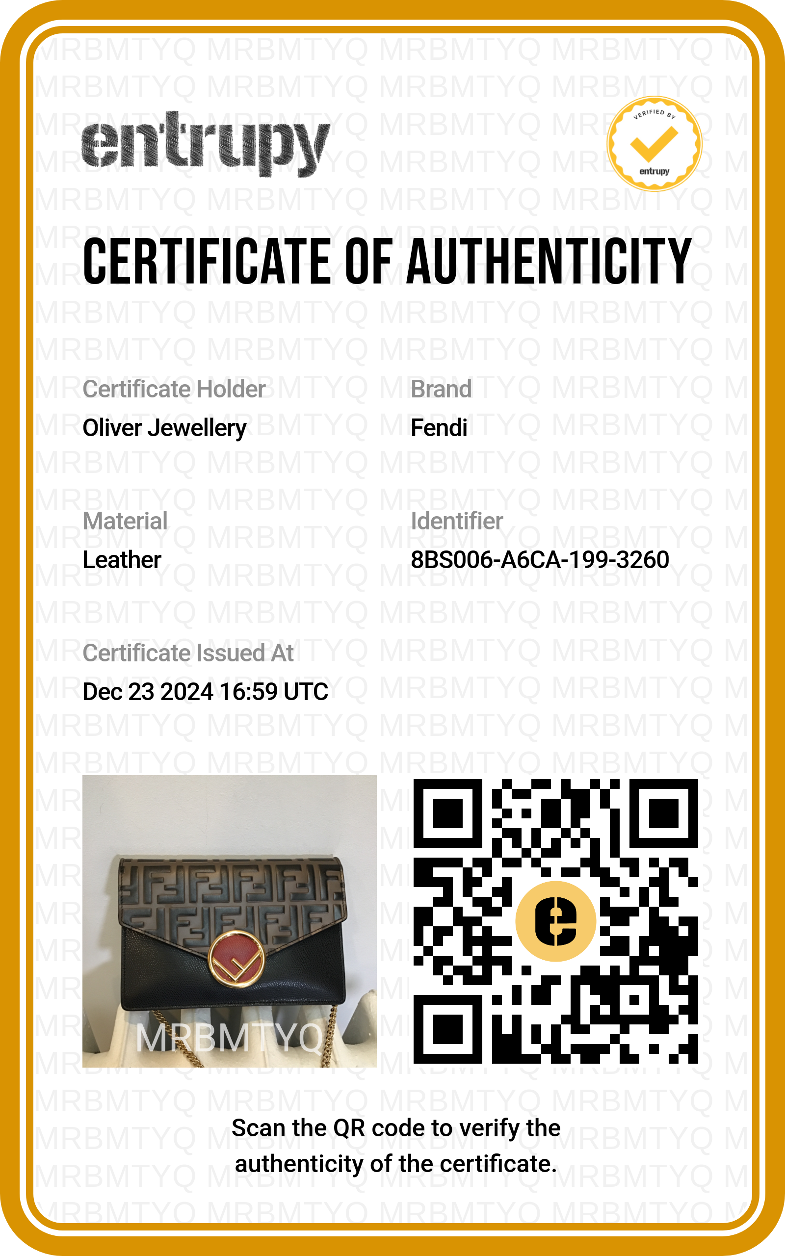 Brown/Black FF 1974 Embossed Leather F is Envelope Wallet on Chain