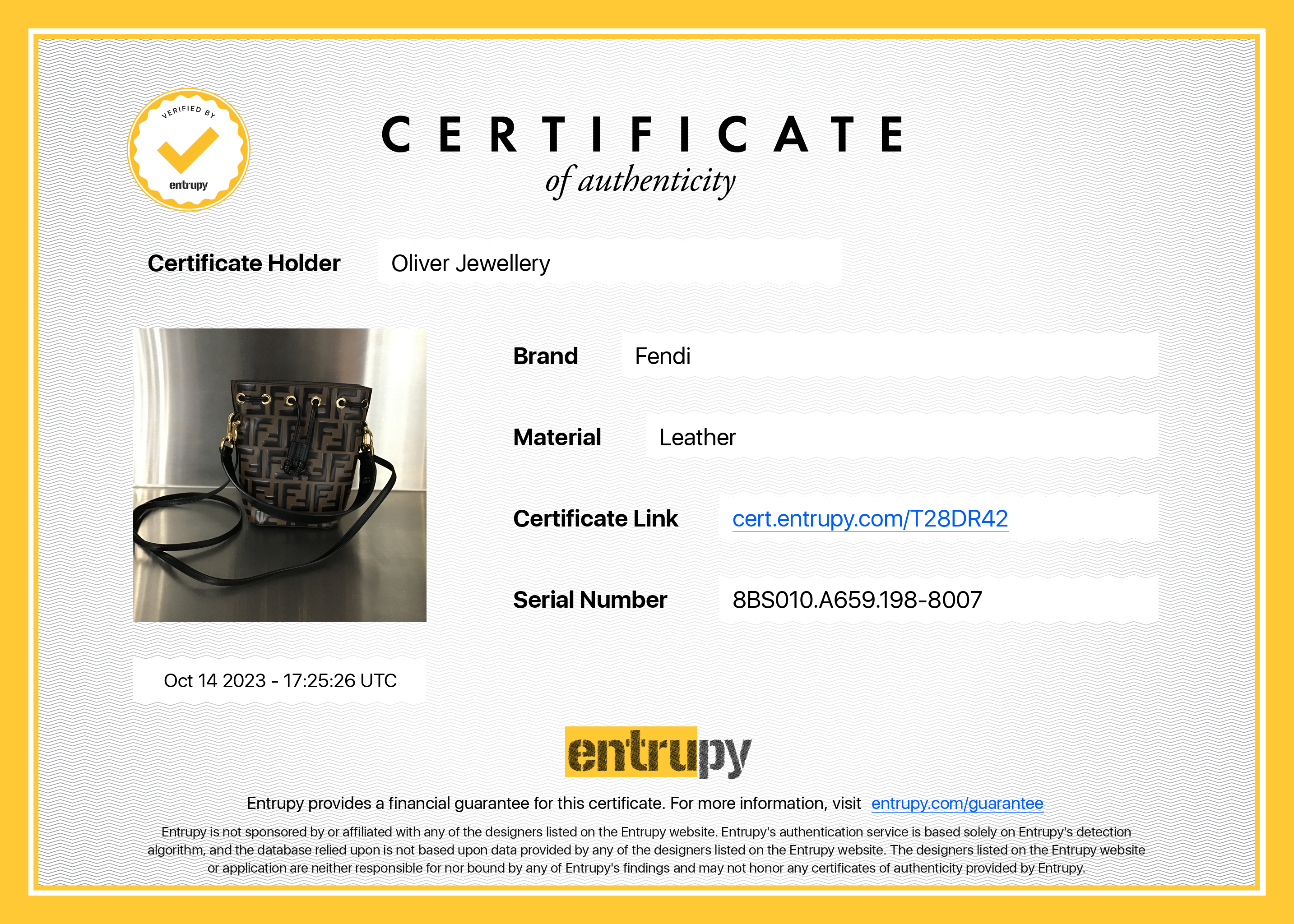 Dust Bag, Detachable Strap, Entrupy Certificate of Authenticity