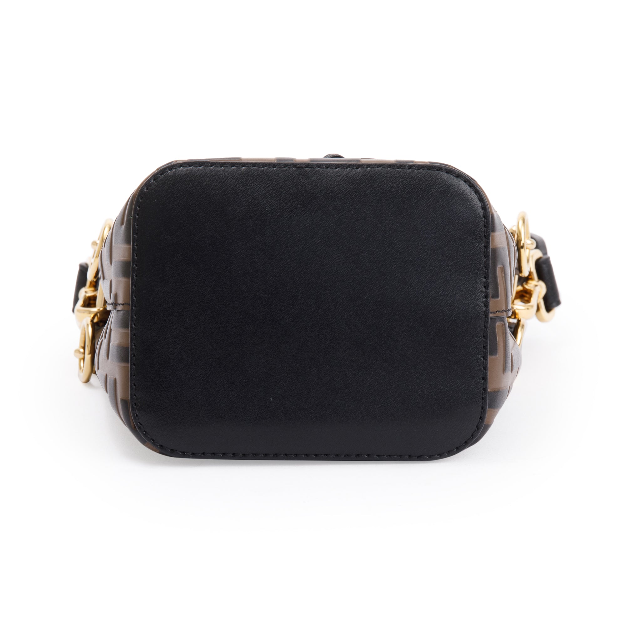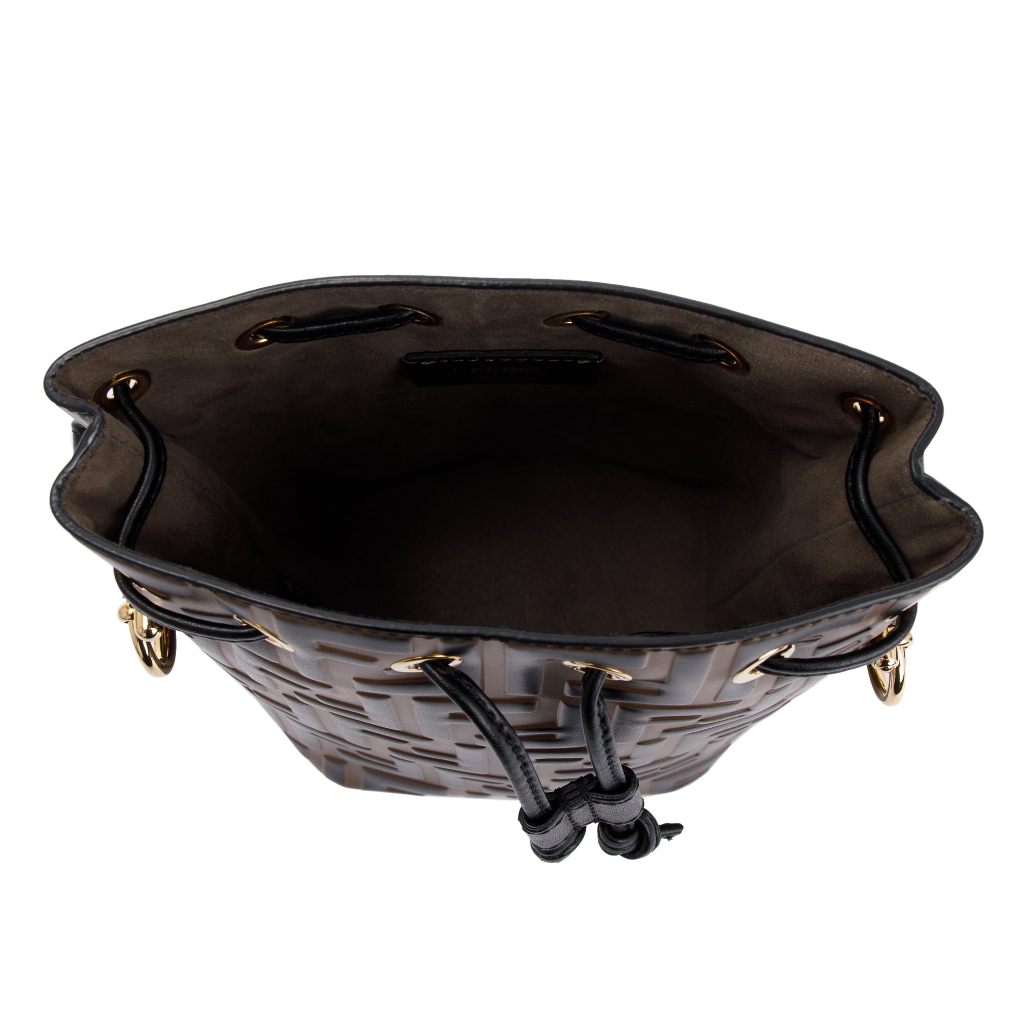 Brown FF 1974 Embossed Calfskin Leather Mini Mon Tresor Bucket Bag w/ Strap