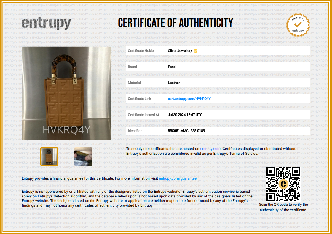 Dust Bag, Strap, Entrupy Certificate of Authenticity