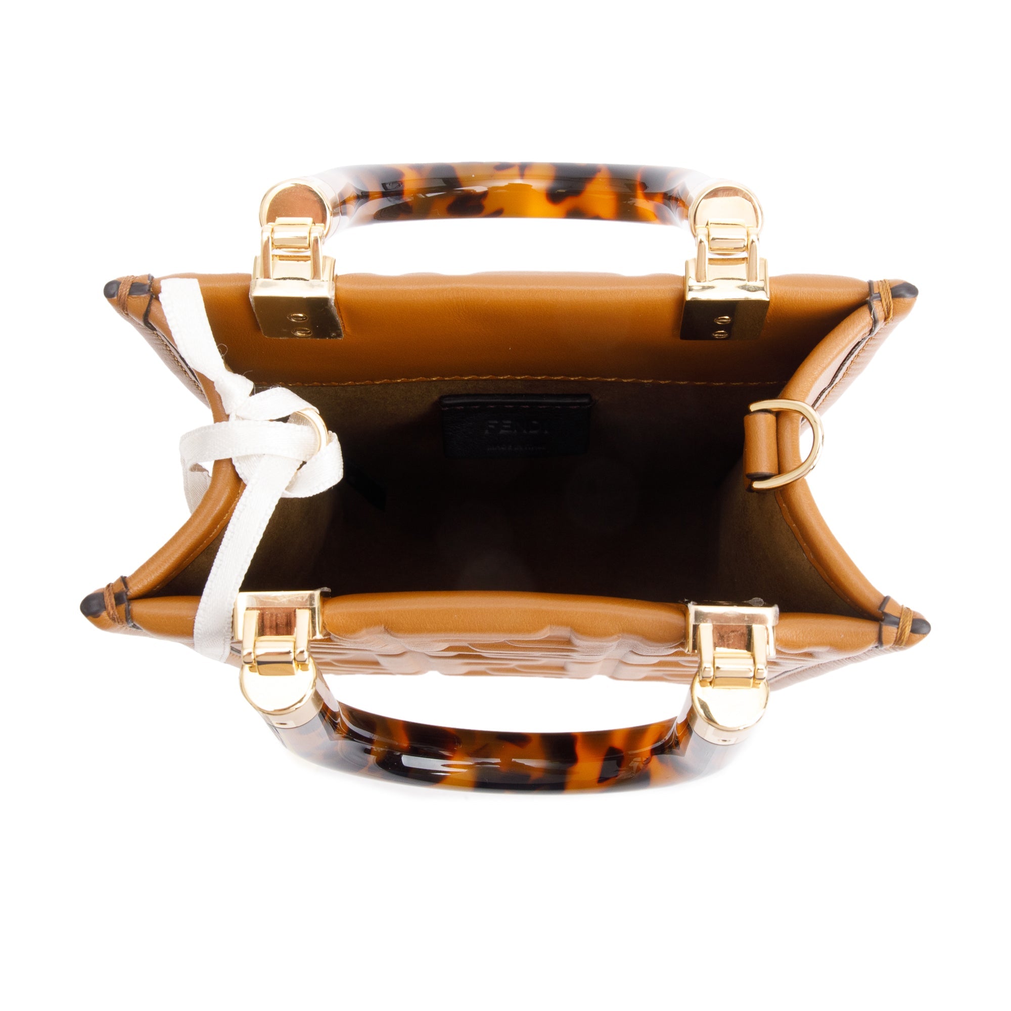 Brown FF Embossed Leather Mini Sunshine Shopper Tote