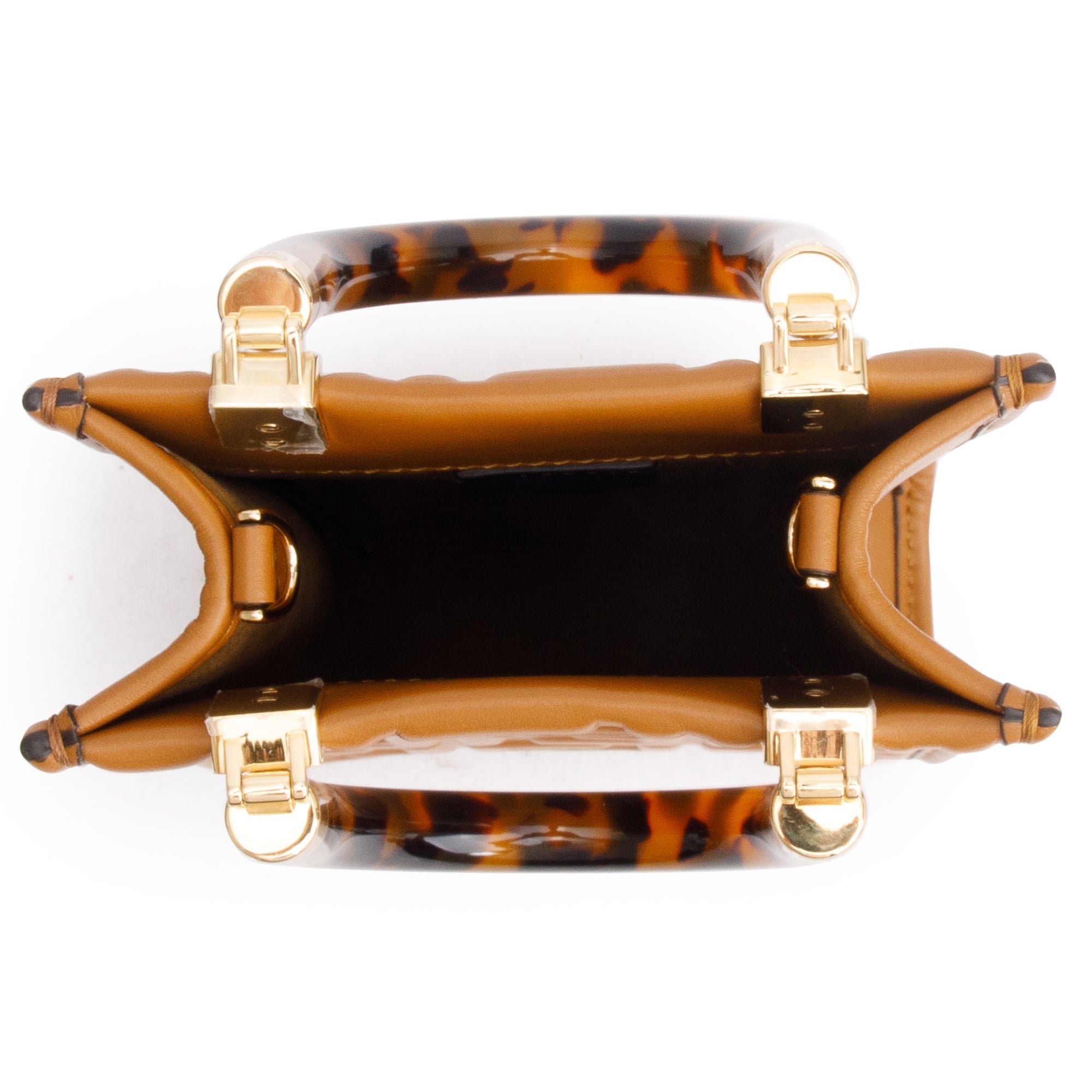 Brown FF Embossed Leather Mini Sunshine Shopper Tote