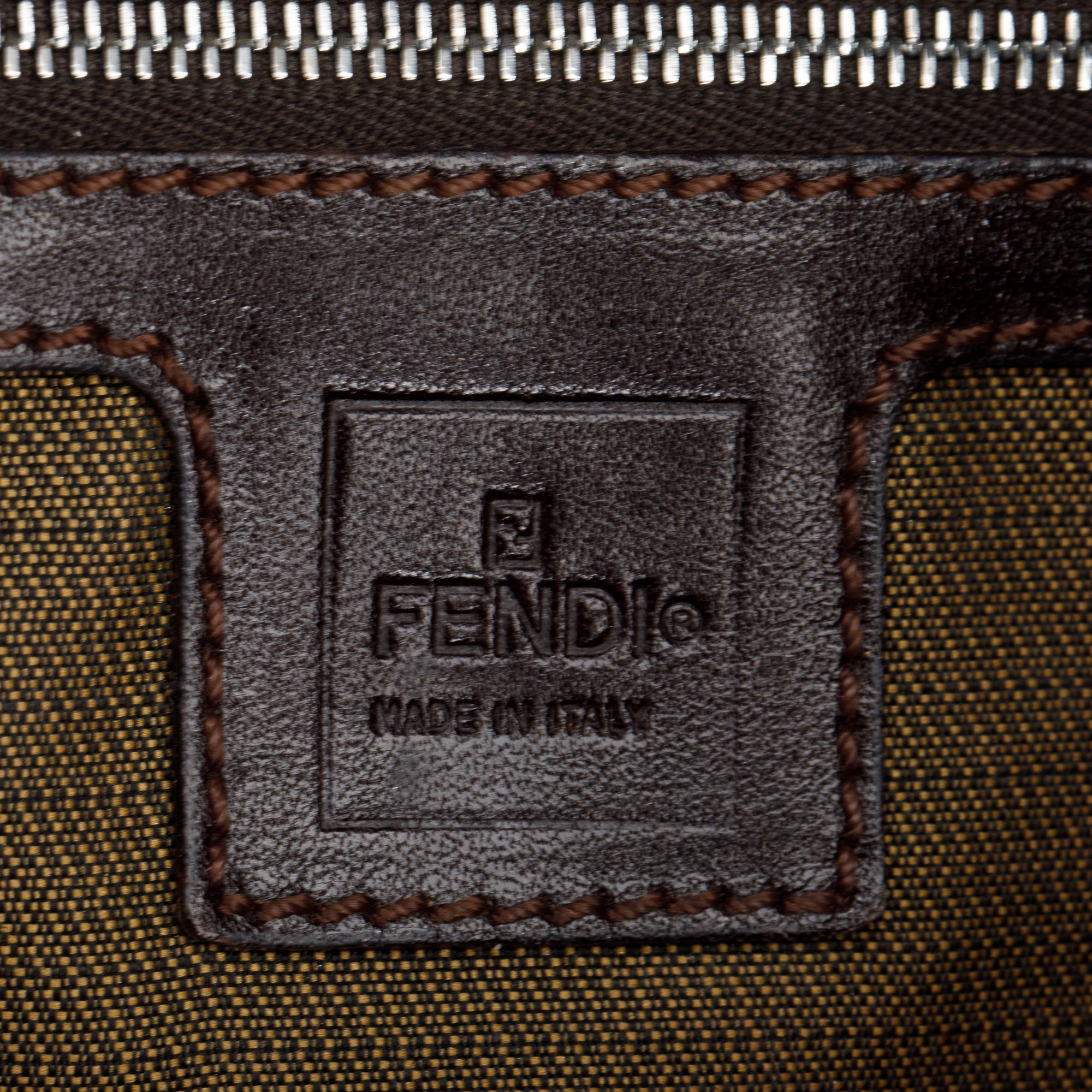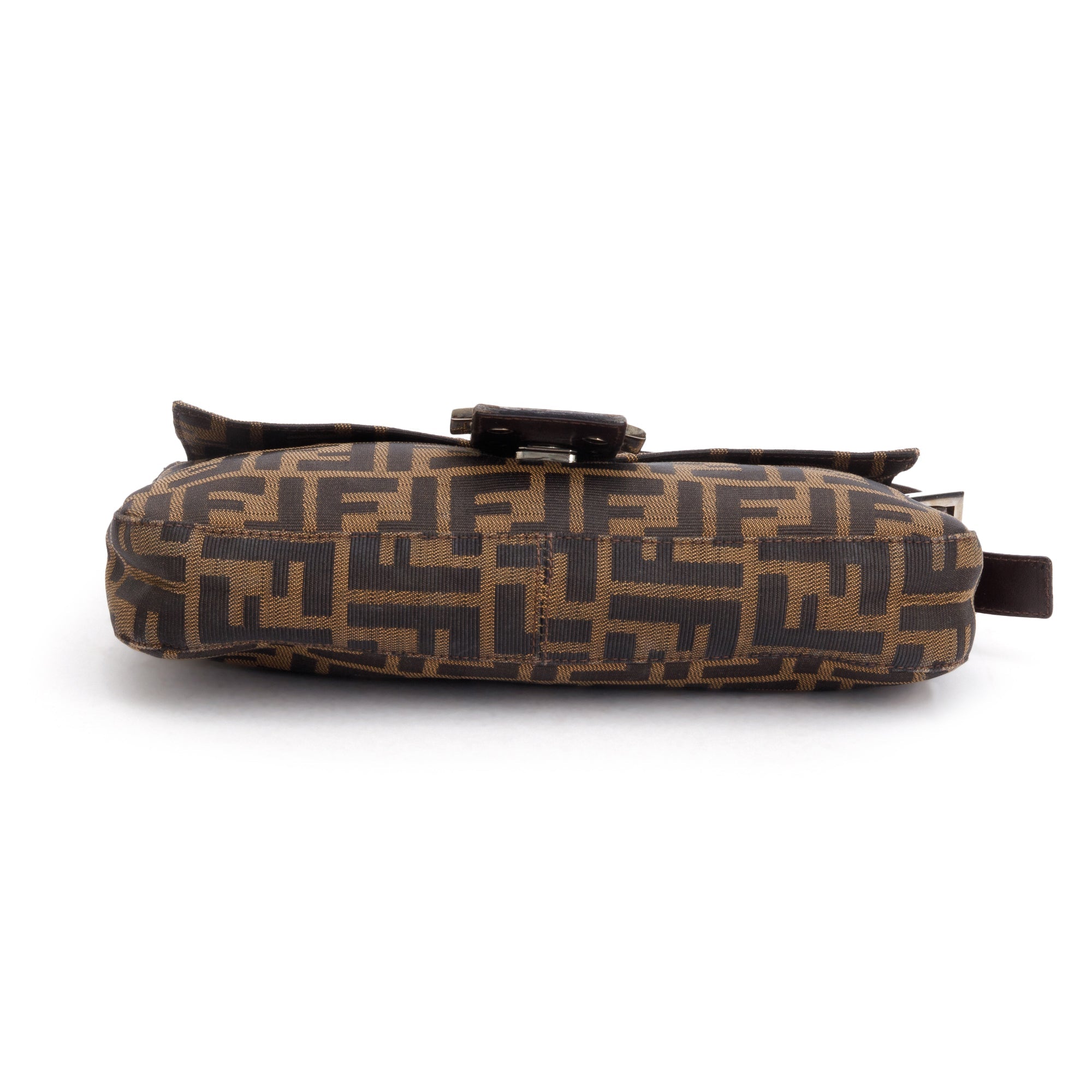 Brown FF Zucca Canvas Brown Leather Trim Baguette Shoulder Bag