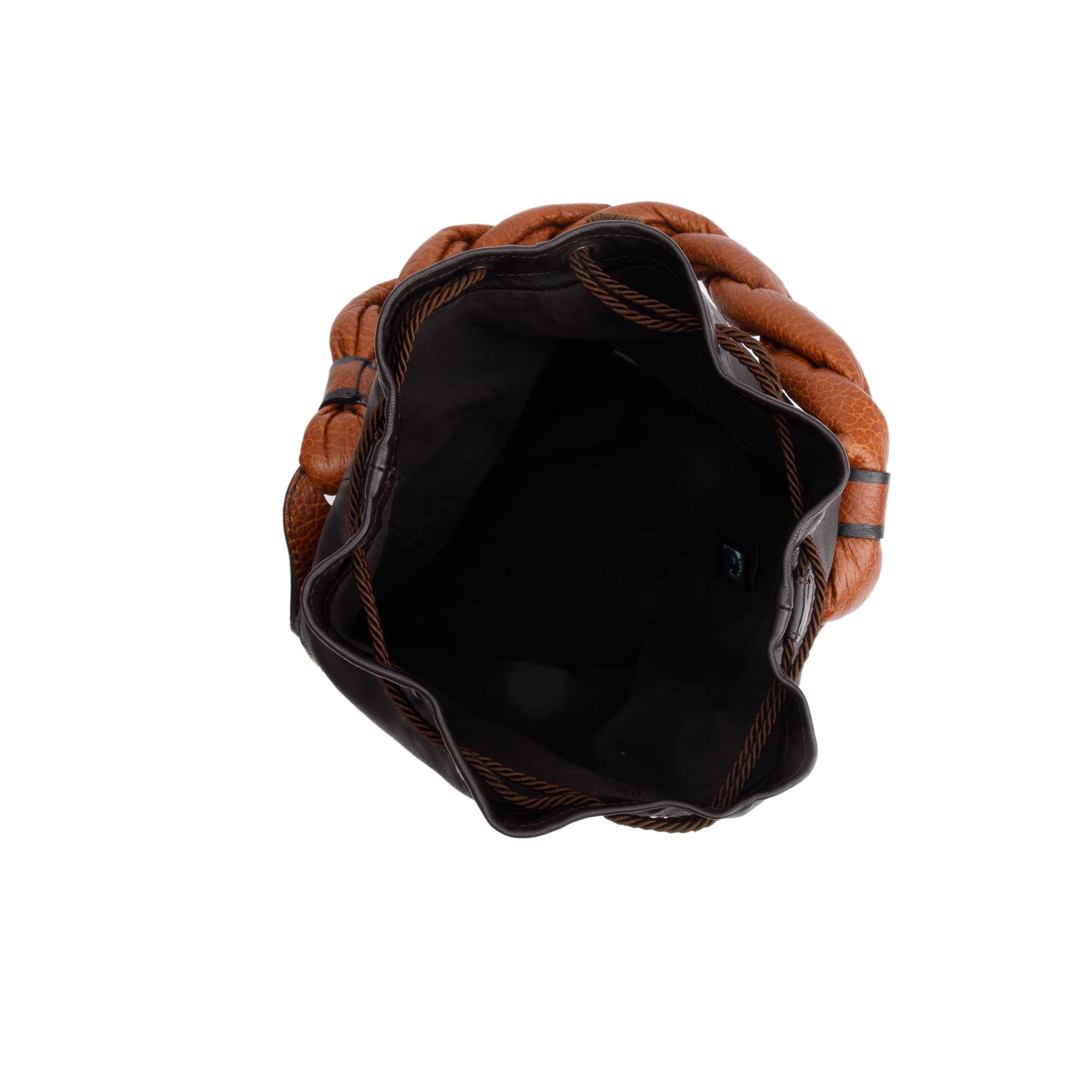 Brown FF Zucca Canvas Brown Leather Trim Small Palazzo Drawstring Bucket Bag