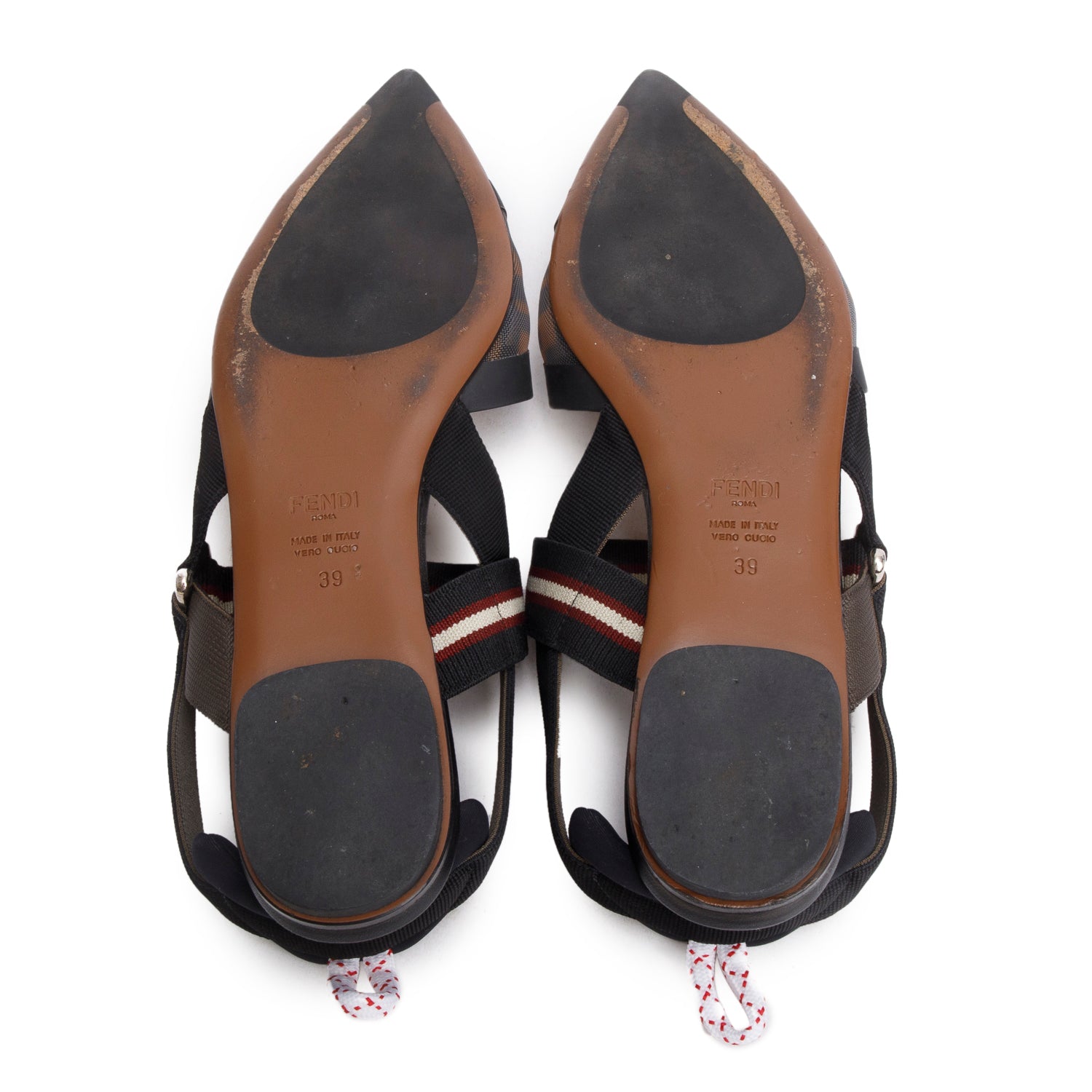 Brown FF Zucca Colibri Mesh Slingback Flat Mules, Size 39