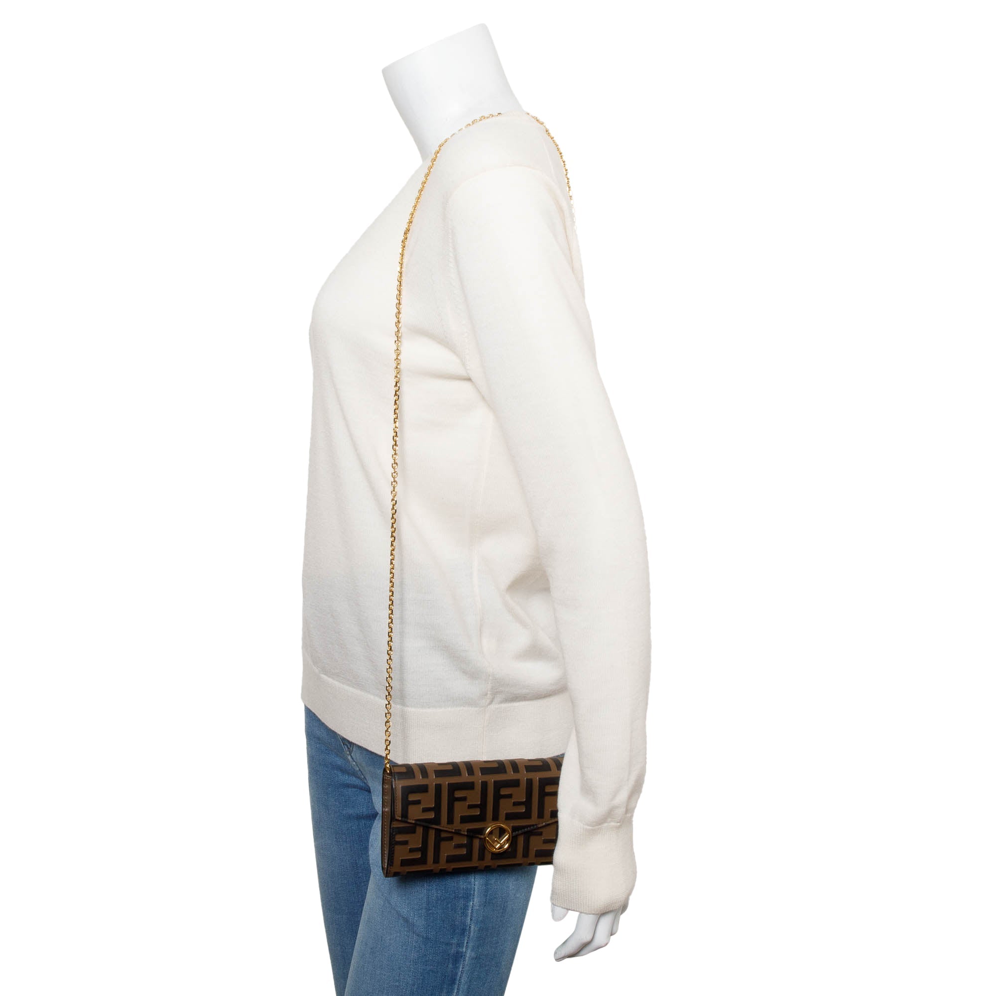 Brown FF Zucca Embossed Leather Continental Wallet on Chain w/ Box
