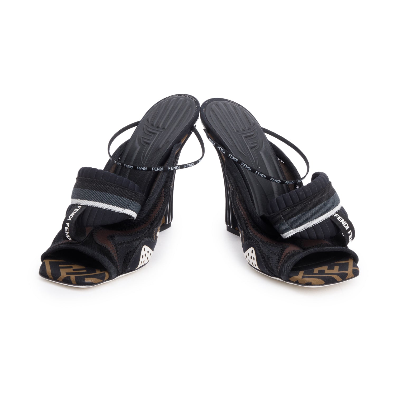 Brown FF Zucca Neoprene Black Mesh Printed Sandals, Size 40