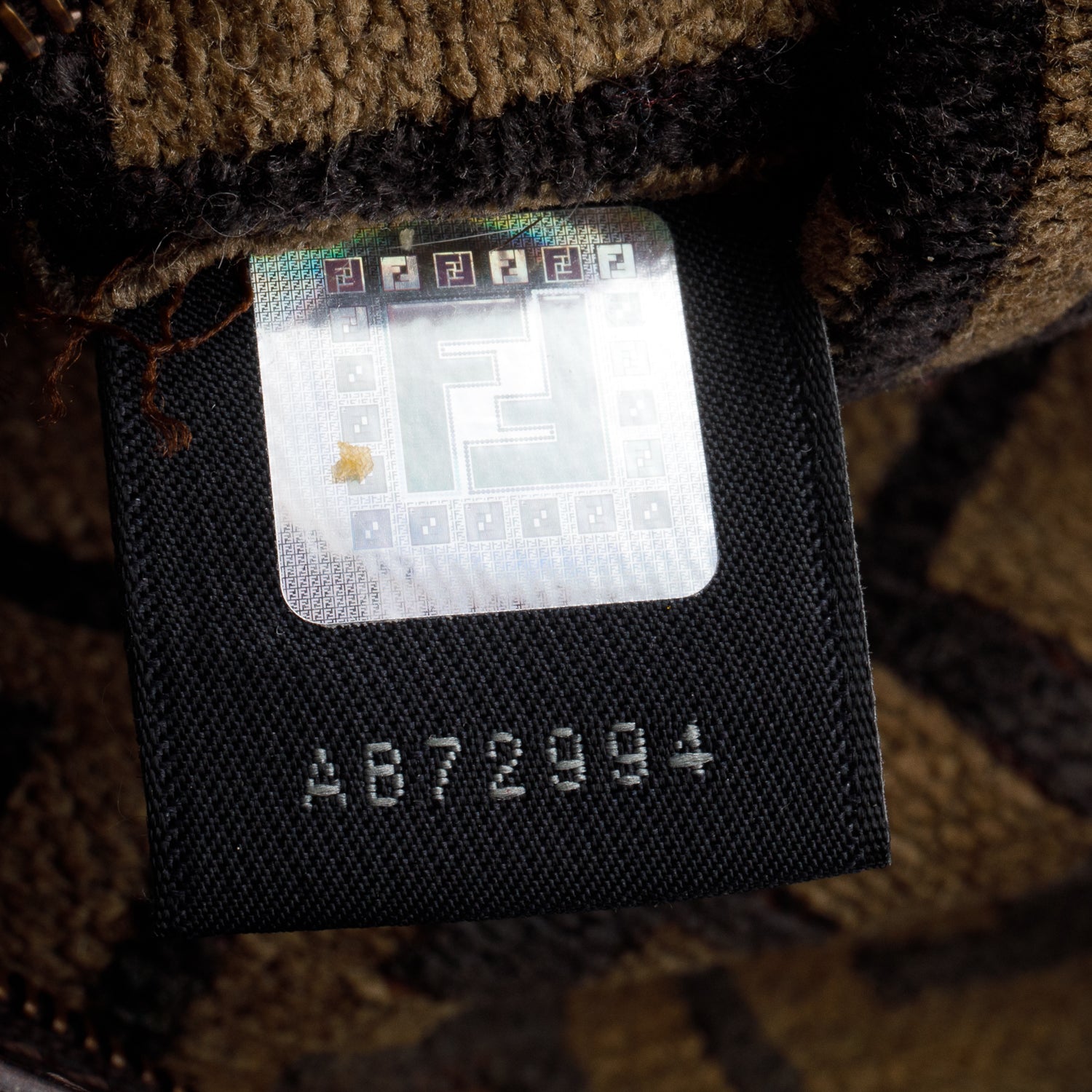 Brown FF Zucca Wool Brown Leather Trim Baguette Shoulder Bag