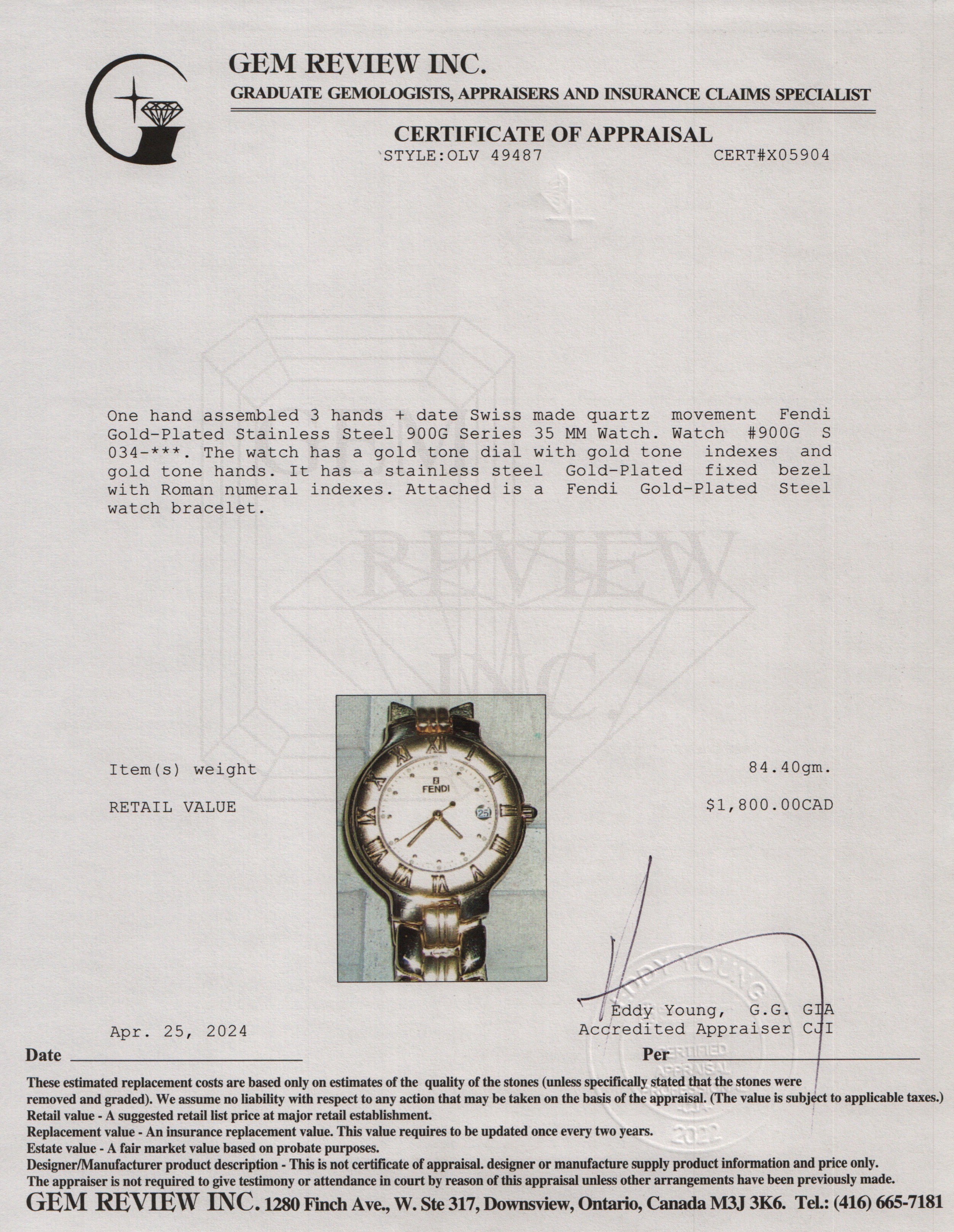 Gold-Plated Stainless Steel 900G Series 35 MM Watch