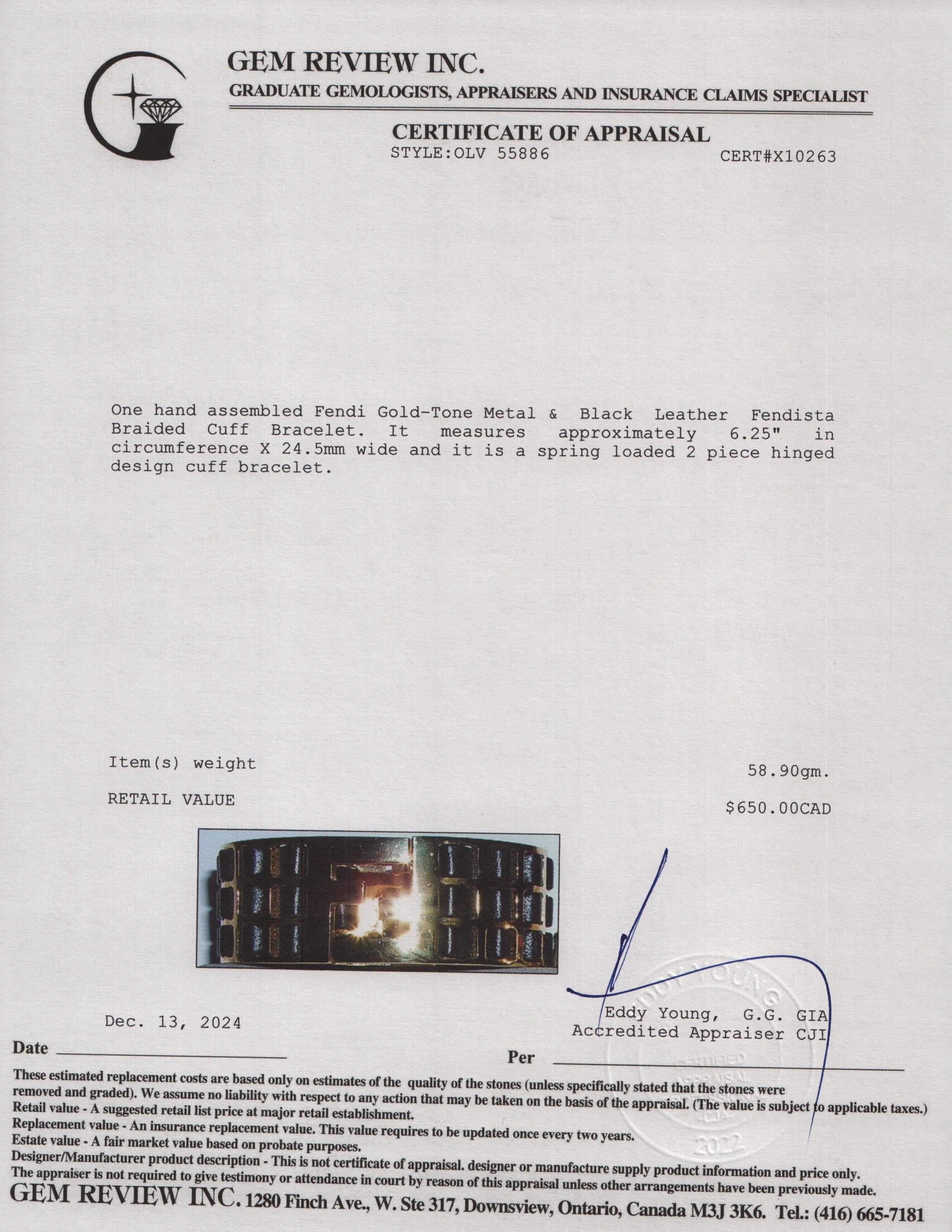 Gold-Tone Metal & Black Leather sta Braided Cuff Bracelet