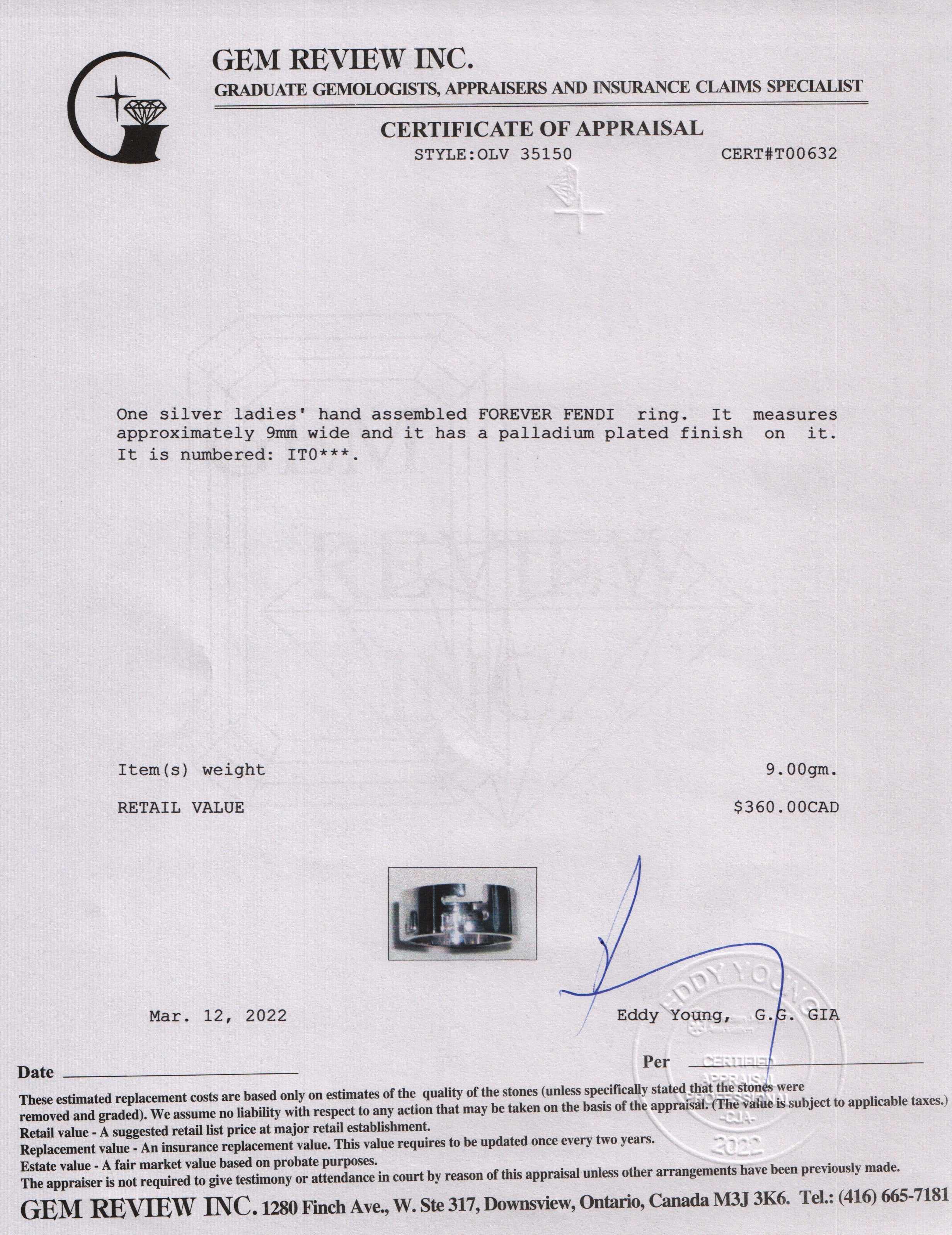- Fendi Ring Size S, U.S. Ring Size 8.75