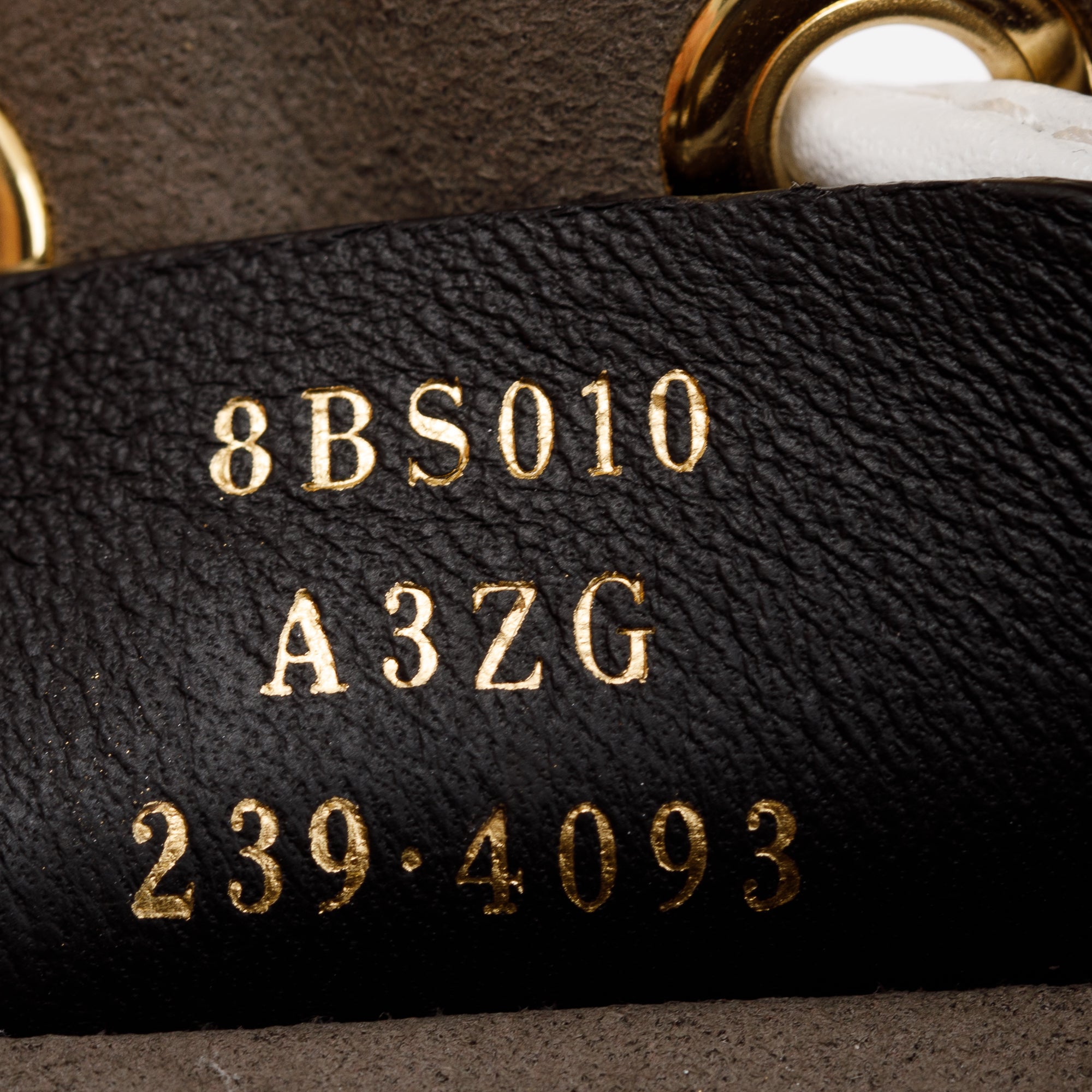 White FF Embossed Calfskin Leather Mini Mon Tresor Bucket Bag w/ Strap