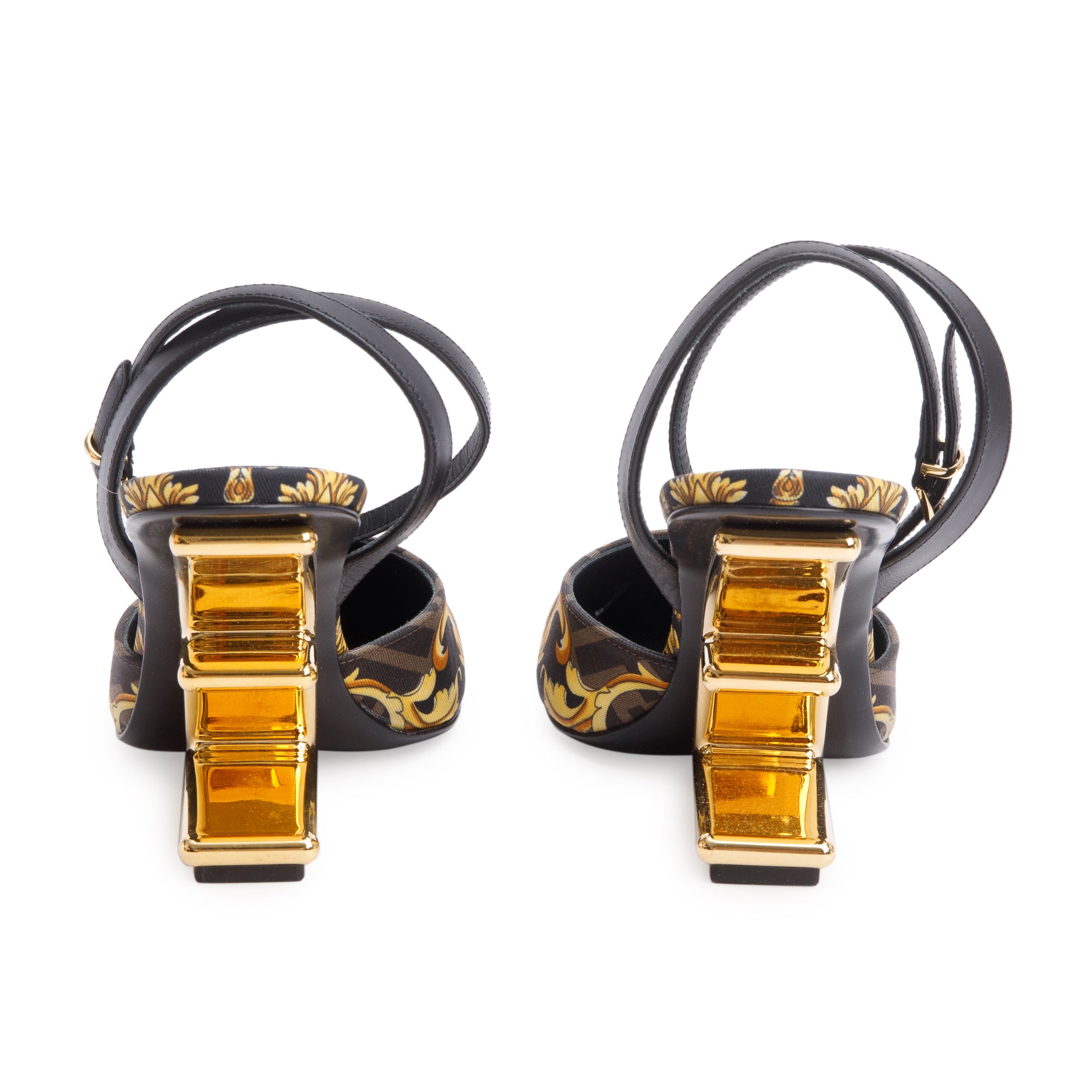 X Versace Brown Printed Canvas Fendace Slingback Pumps, Size 38 w/ Box