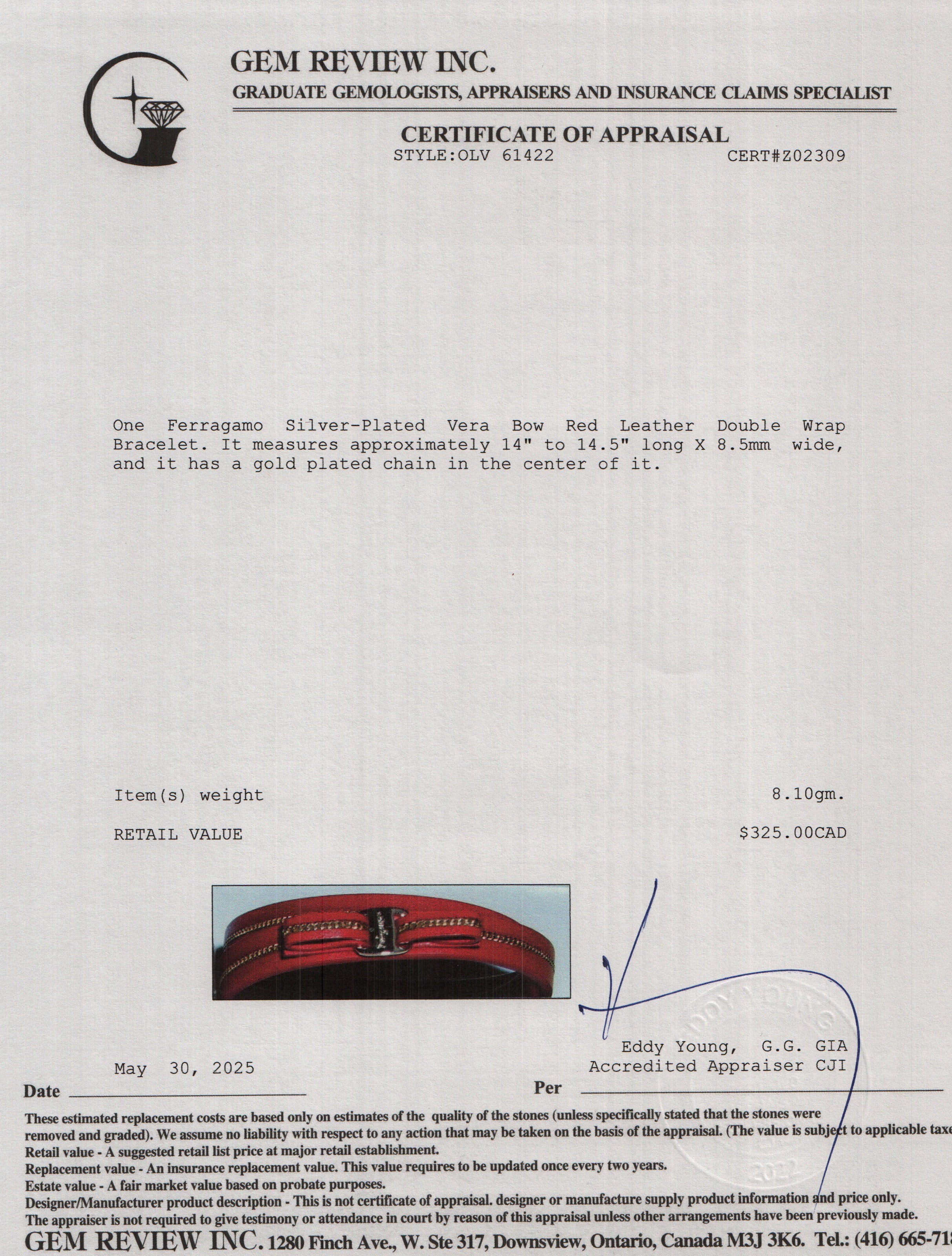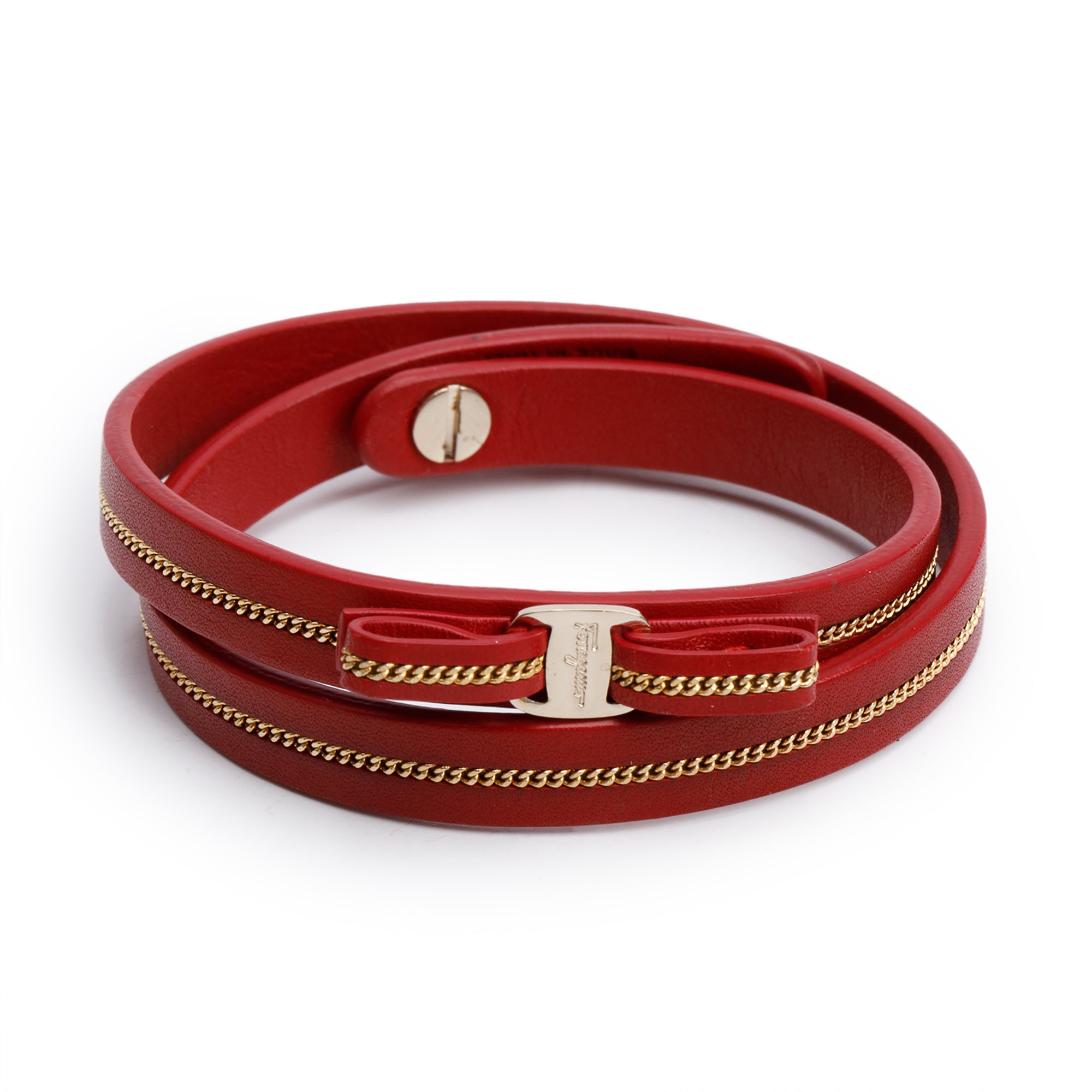 Silver-Plated Vera Bow Red Leather Double Wrap Bracelet w/ Box