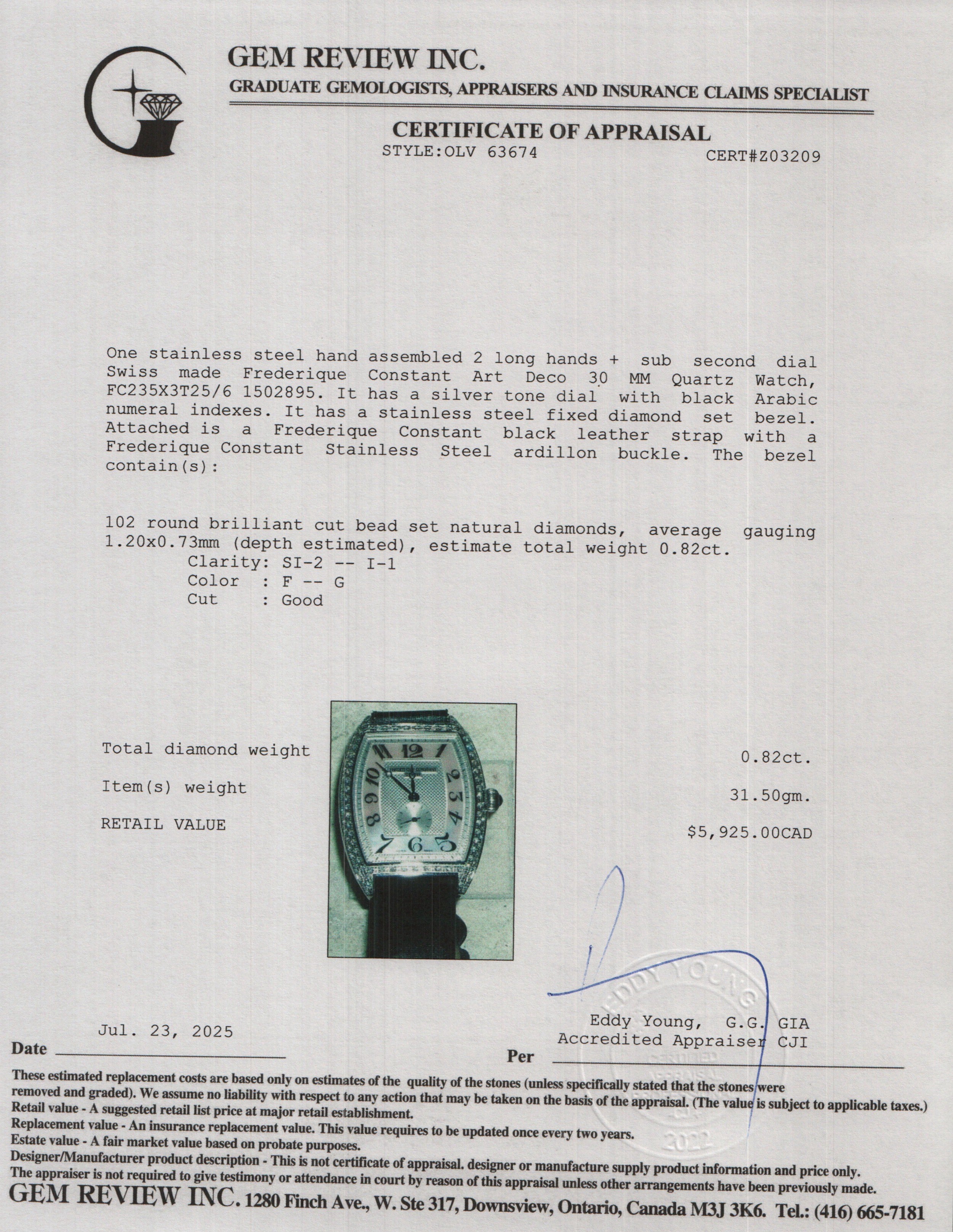Stainless Steel Diamond Bezel Art Deco 30 MM Quartz Watch