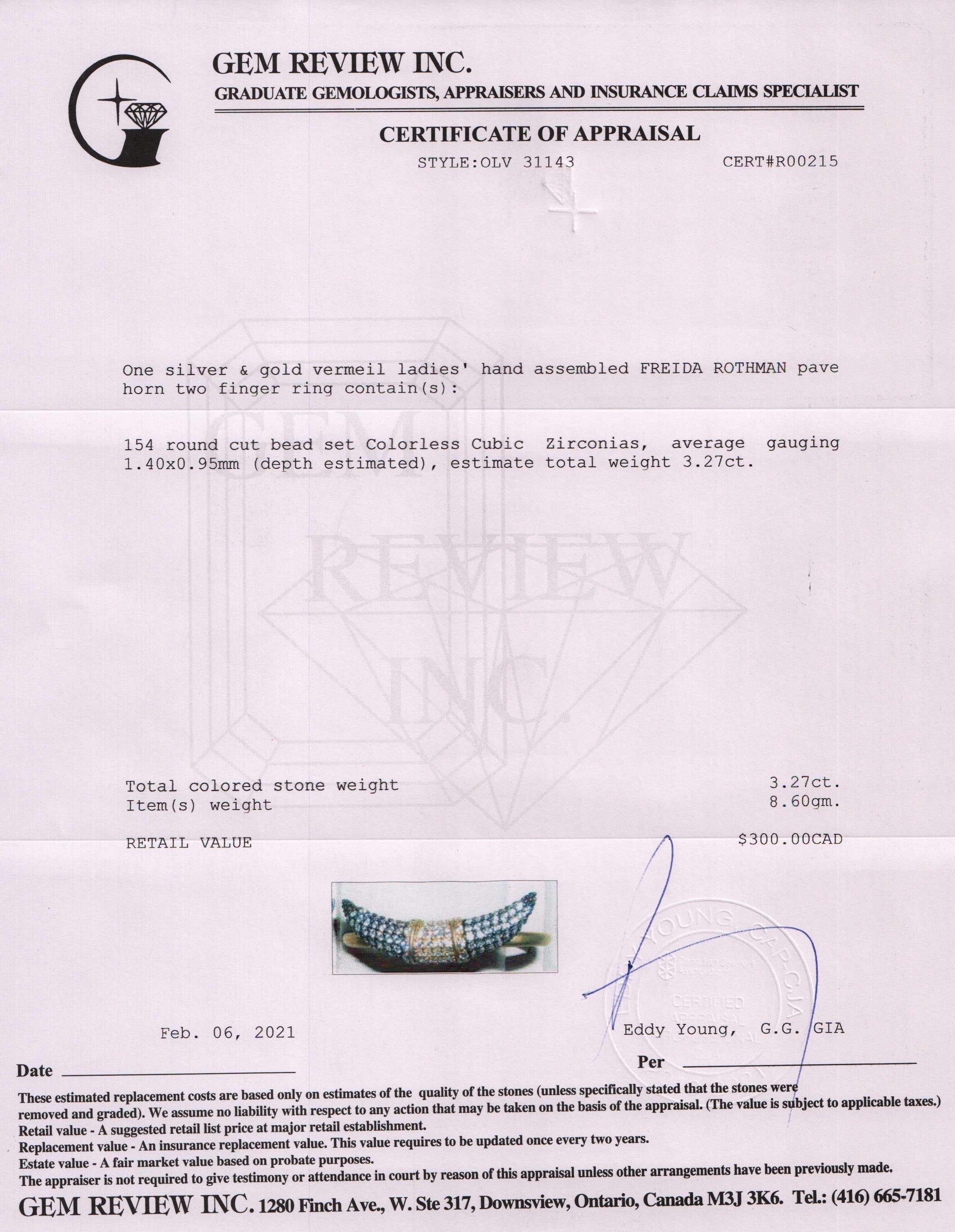 Freida Rothman CZ Pave Horn Two-Finger Ring