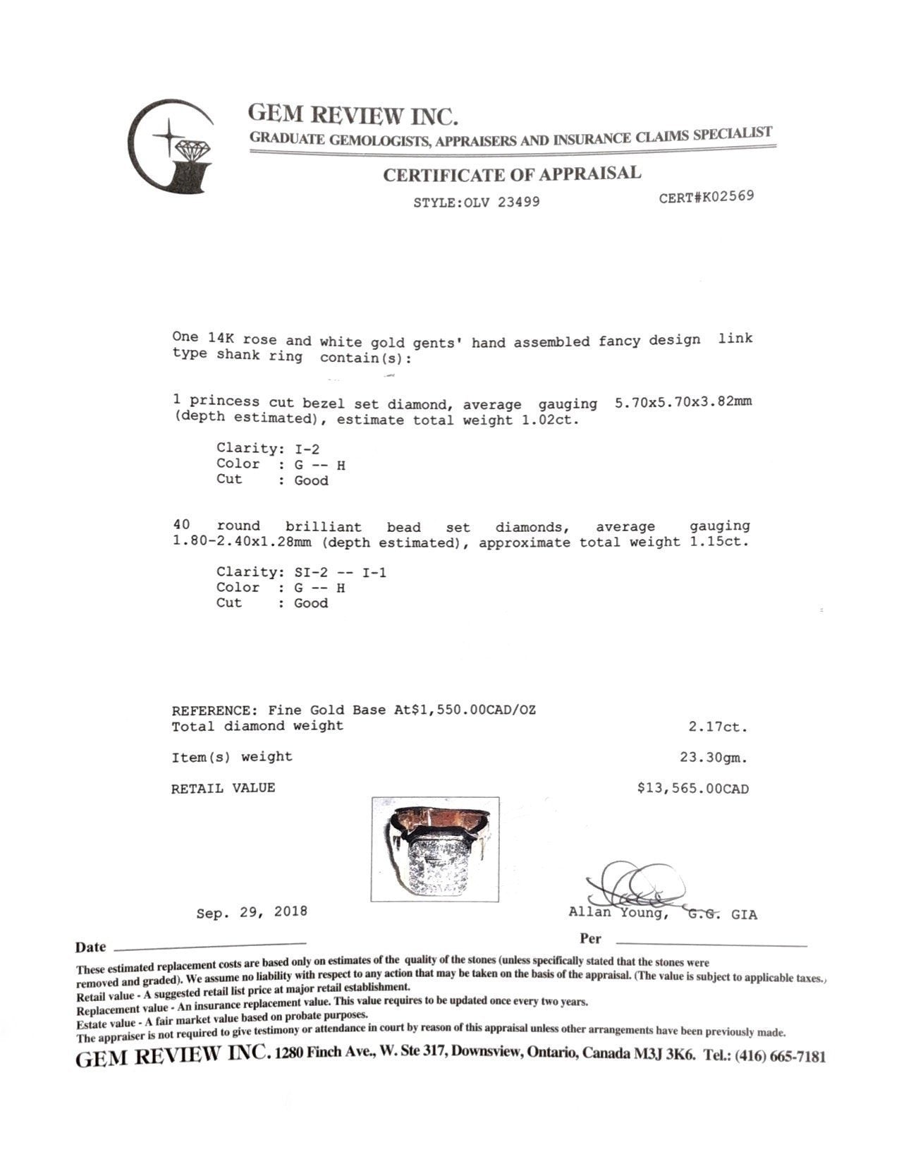 - 1 Princess Cut Diamond Weighing Approximately 1.02 ct. of I2 Clarity, G-H Colour, Good Cut