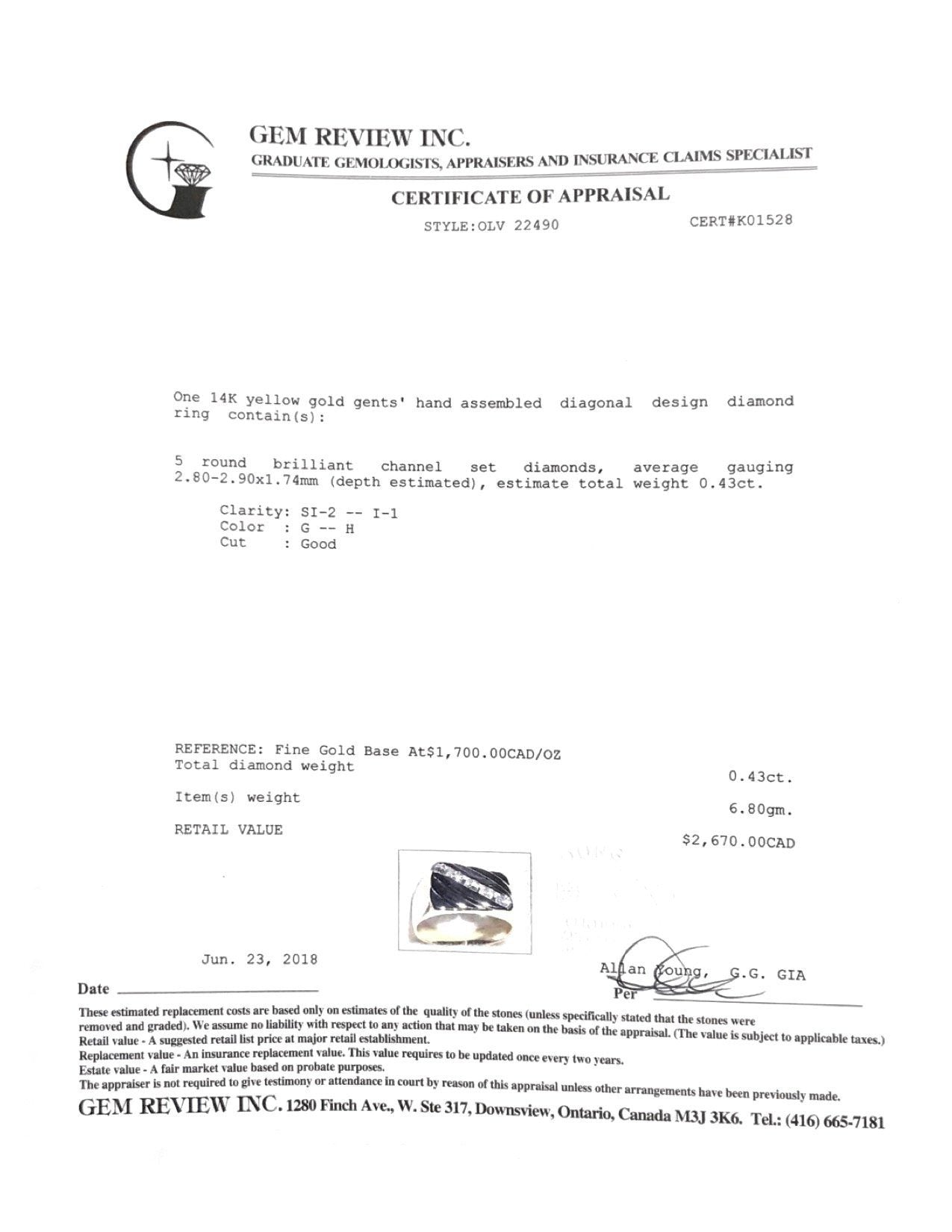 - 5 Round Brilliant Cut Diamonds Totalling Approximately 0.43 ct. of SI2-I1 Clarity, G-H Colour, Good Cut