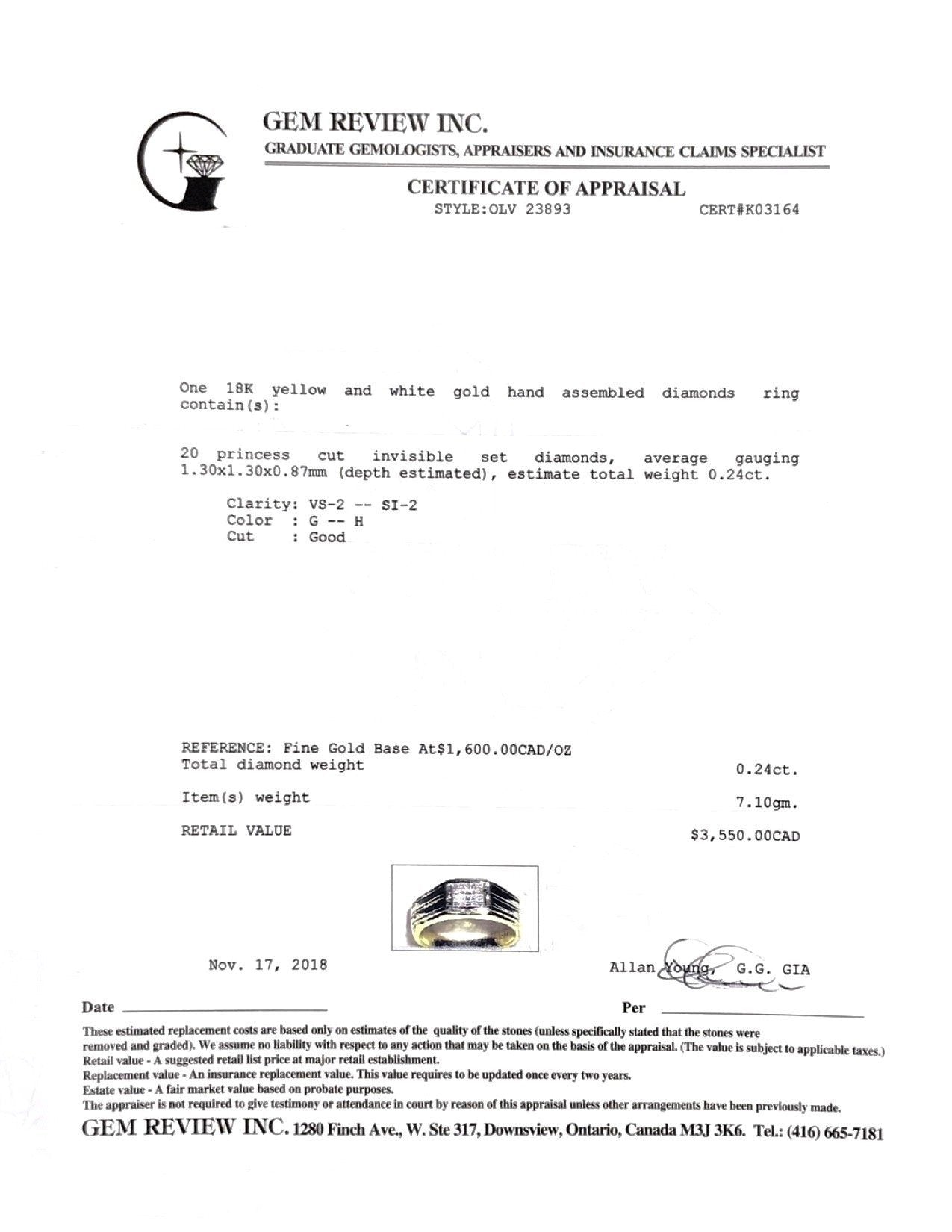- 20 Princess Cut Invisible-Set Diamonds Totalling Approximately 0.24 ct. of VS2-SI2 Clarity, G-H Colour, Good Cut