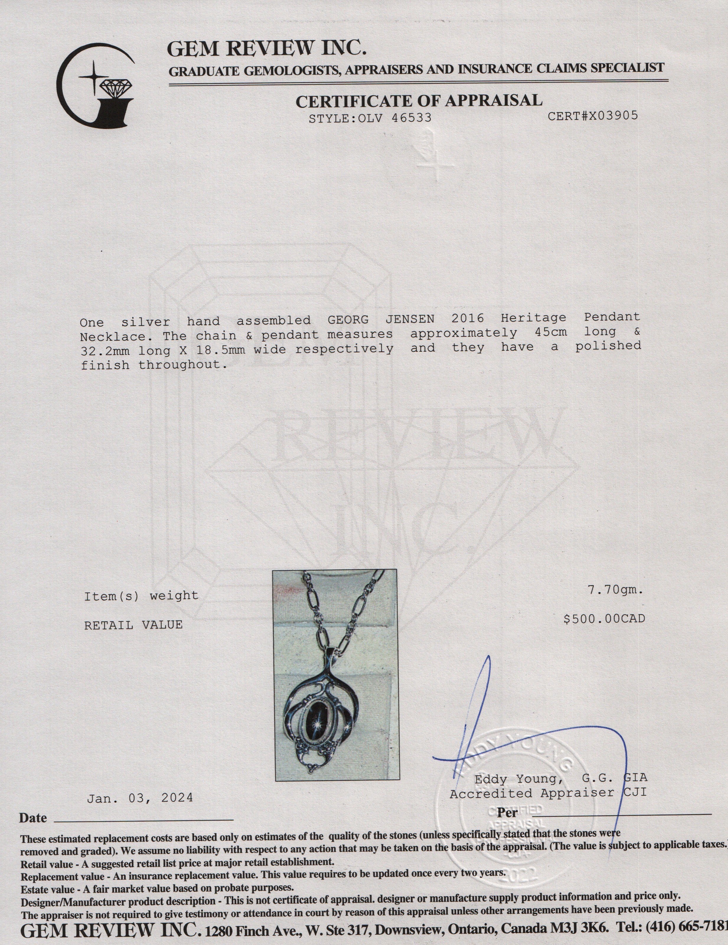 Sterling Silver 2016 Heritage Pendant Necklace w/ Box