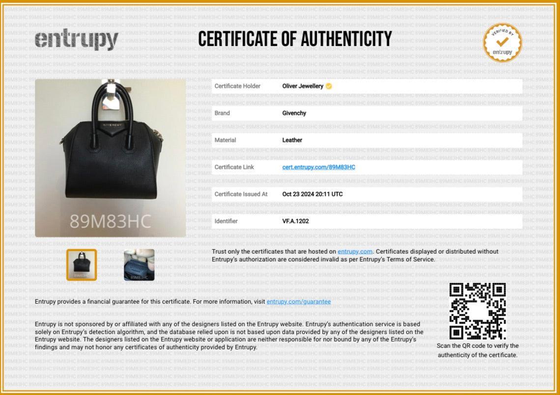 Dust Bag, Strap, Entrupy Certificate of Authenticity