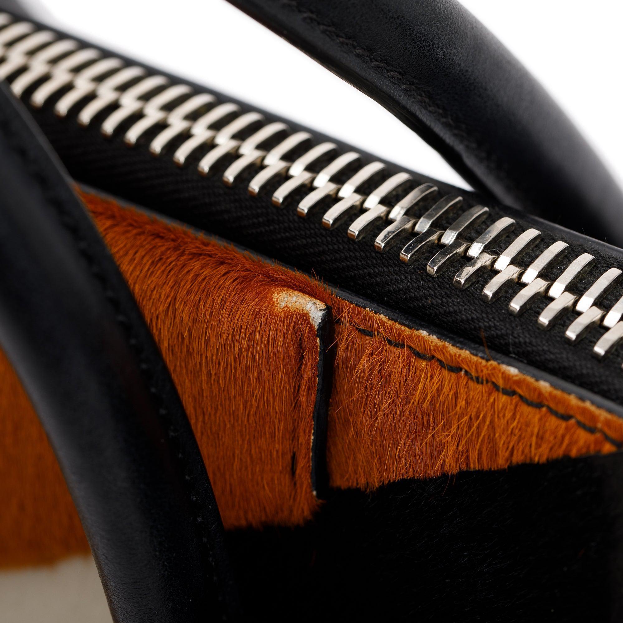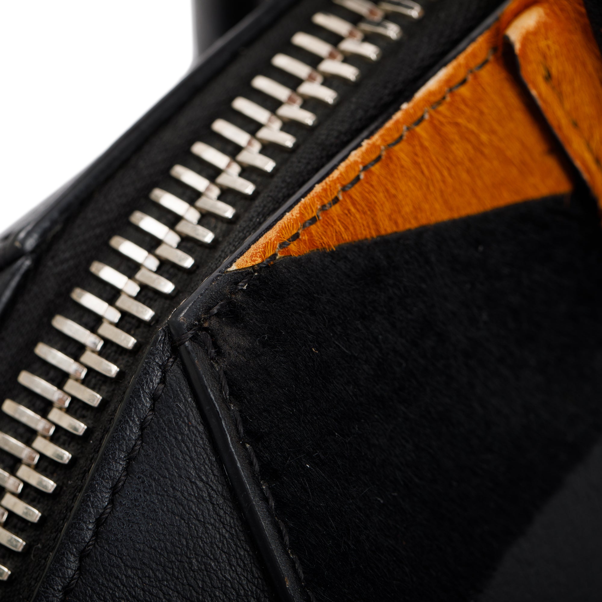 Fur Trim Black Calfskin Leather Medium Antigona Bag
